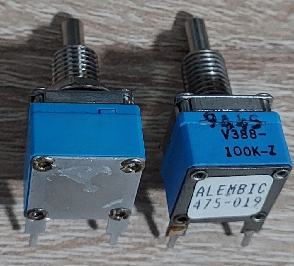 Kürzlich musste ich zwei Potentiometer an meinem Alembic ersetzen. Schließlich gelang es mir, genau die gleichen Potis zu finden, die Alembic verwendet, jedoch musste ich 10 Stück beim Händler in den USA bestellen.