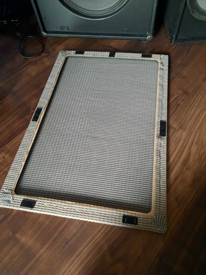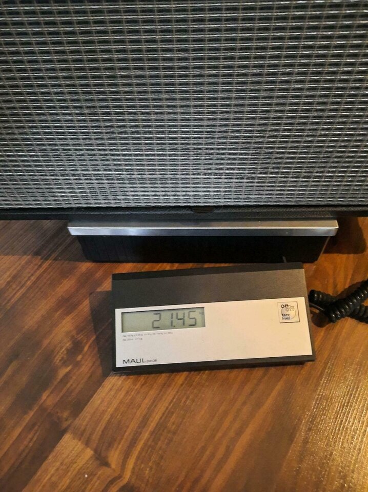 Das Anschlussterminal, Hochtonhorn, HP-Filter, Griffe, Frontplatte, abnehmbare Frontbespannung, Regler fürs Horn etc. sind neu.