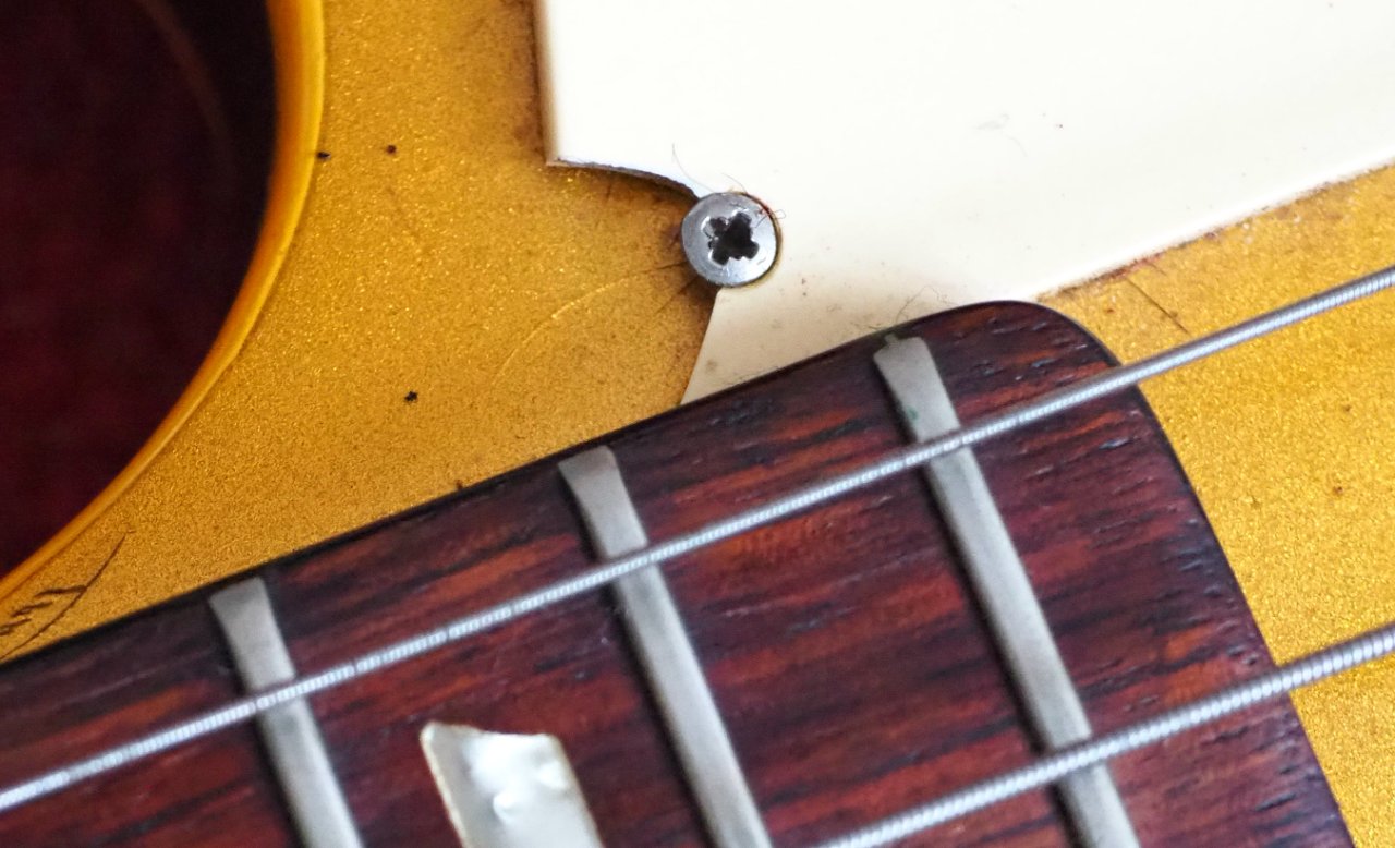 Originalzustand, aber es fehlt die Brückenabdeckung und außerdem ist eine Ecke vom Pickguard abgebrochen. Siehe Fotos!