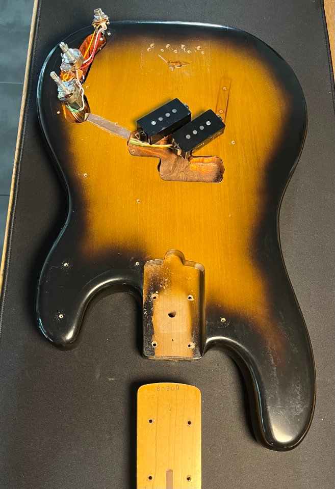 Beside 2 holes from an installed thumb rest, the Bass is in pristine condition for its age.