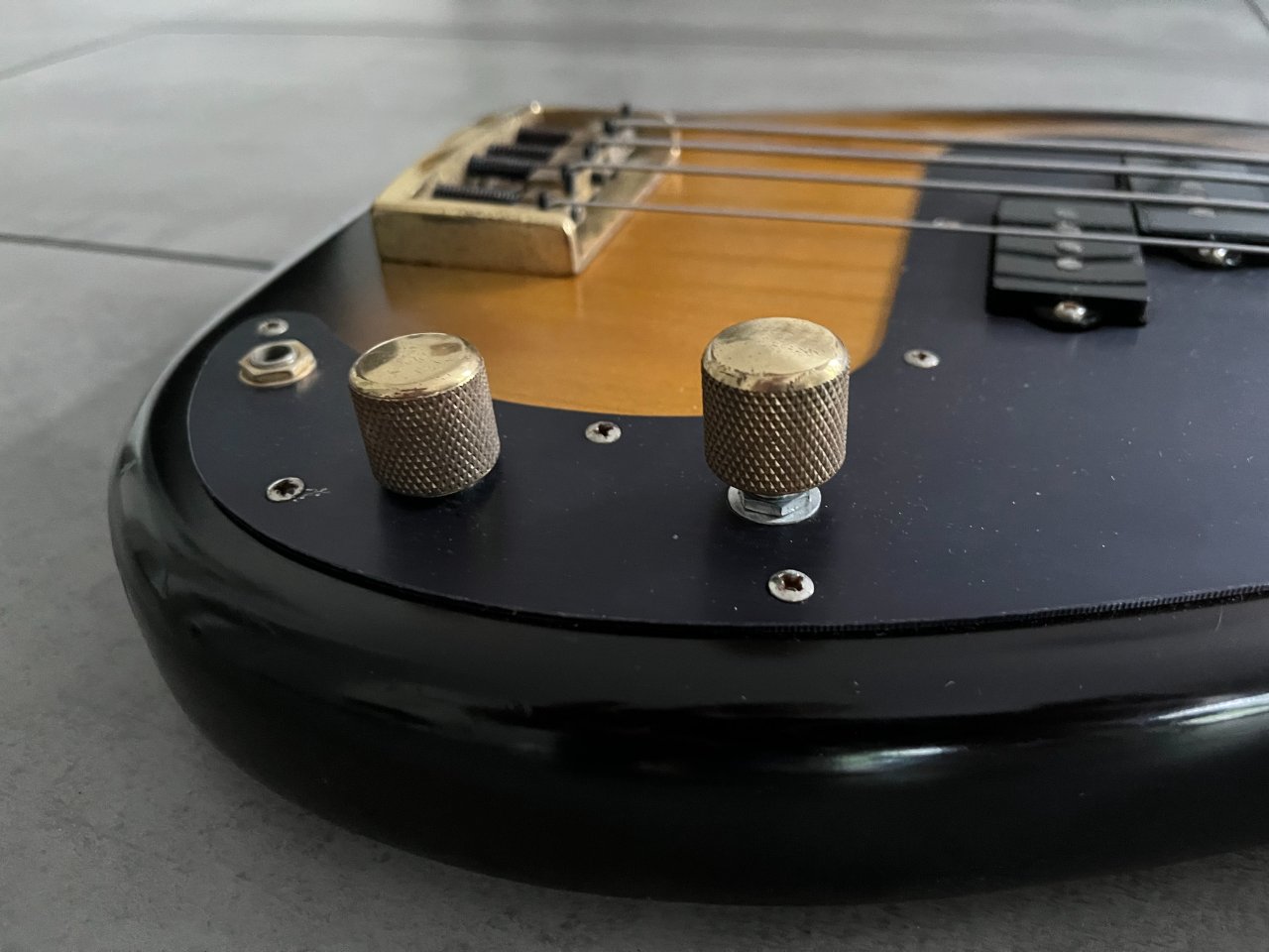 - Parts: Brass nut, Fernandes Brass Bridge, Gold Fernandes GB-2 Tuners, Gold Knobs, Gold neck plate