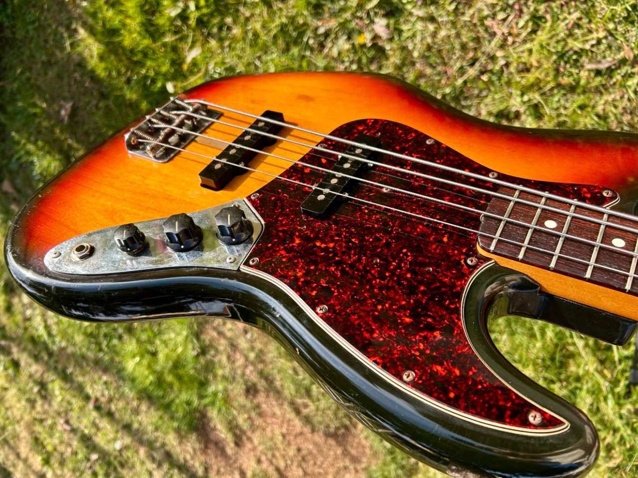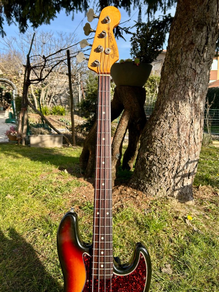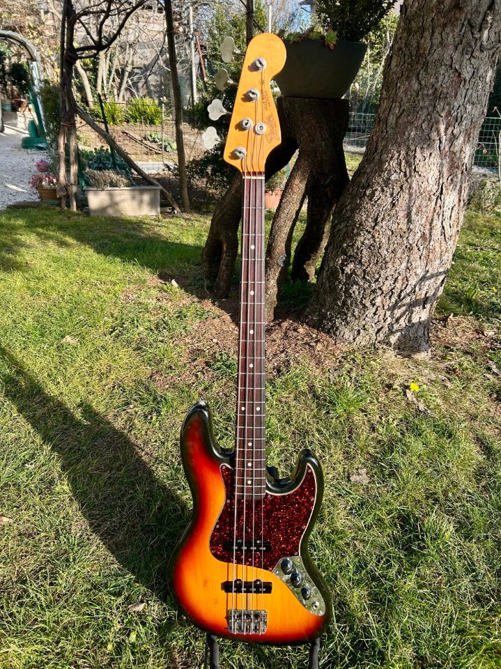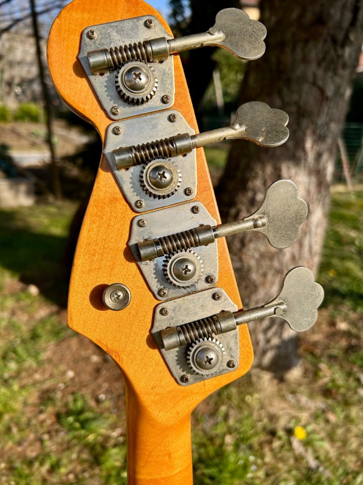 In good condition, plays well, with no defects to report, except for a few cosmetic blemishes on the back of the body resulting from wear and stickers left on the bass for too many years.