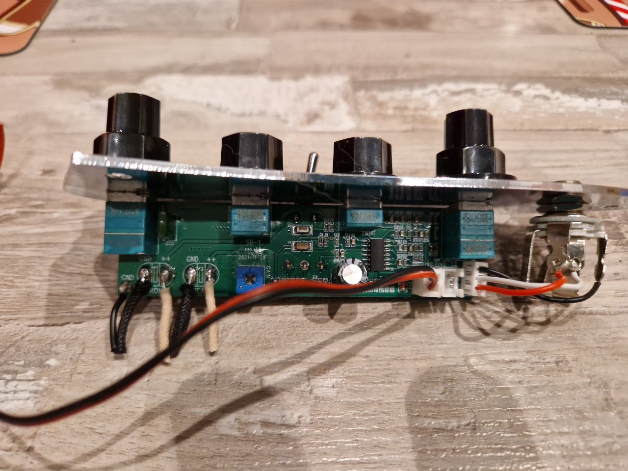 Volume-, Balance- und 3-Band-EQ-Regler (Bass, Mitten, Höhen).