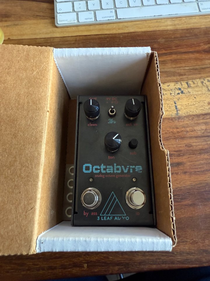 Bin Hardcore-Fan von Spencer's 3 Leaf Audio Pedals, aber habe mir in meiner Begeisterung einige Pedals (warum eigentlich!?) doppelt gekauft. Dieses hier stand nur im Regal, der Vorbesitzer hat auf der Unterseite Velcro zur Befestigung angebracht, was ich für den Fall der Montage auf einem Board dran gelassen habe. Sehr leichte Gebrauchsspuren, siehe Bilder (die iPhone-Kamera ist so gut, ich hätte nochmal vorher Staubwischen sollen…