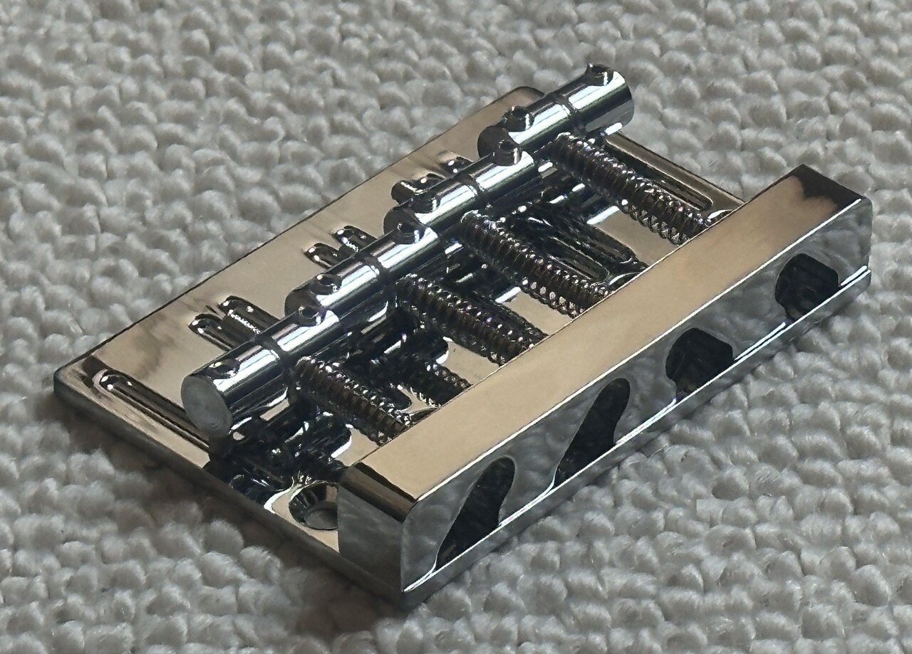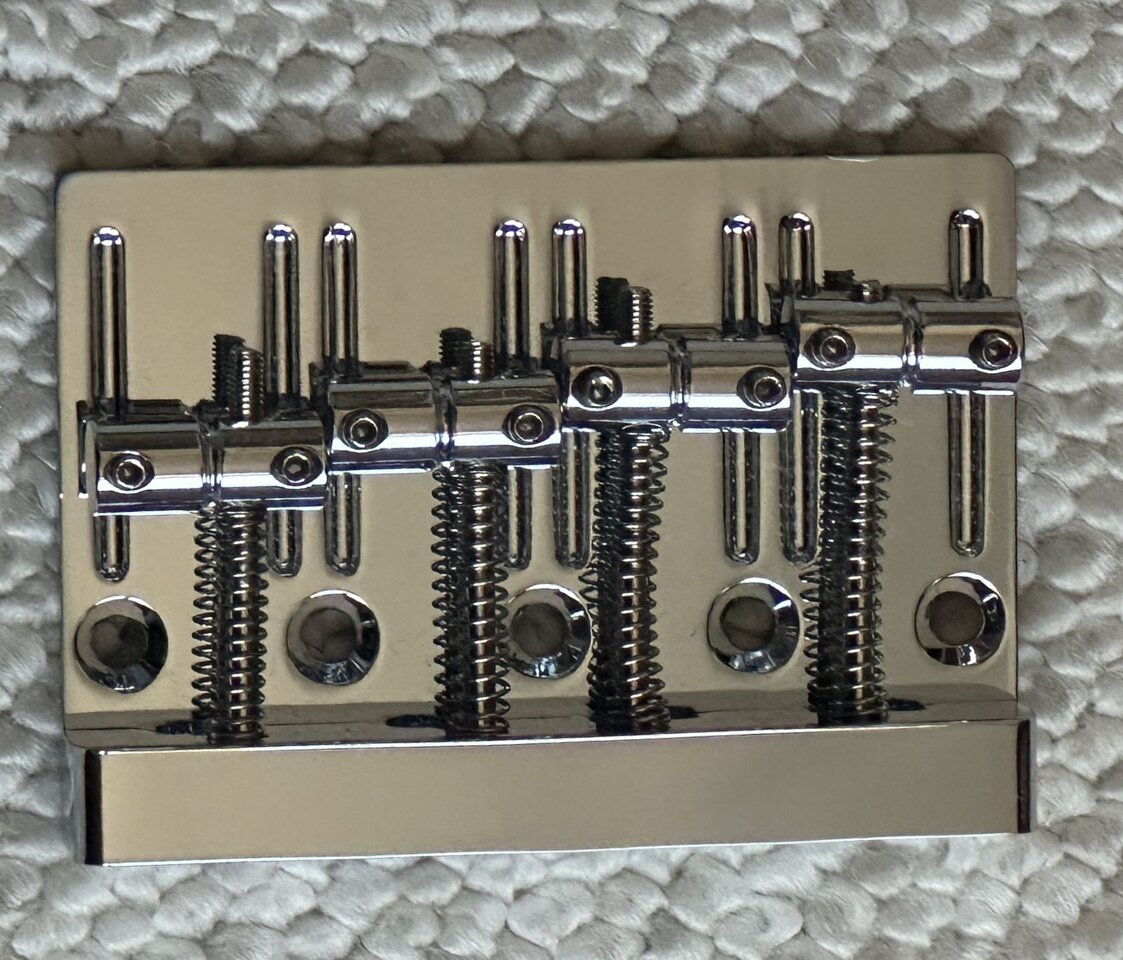 Ich sortiere gerade etwas meine Bastelkiste und brauche diese unbenutzte chromfarbene Bass Brücke für 4 Saiter mit 19 mm Saitenabstand nicht mehr.