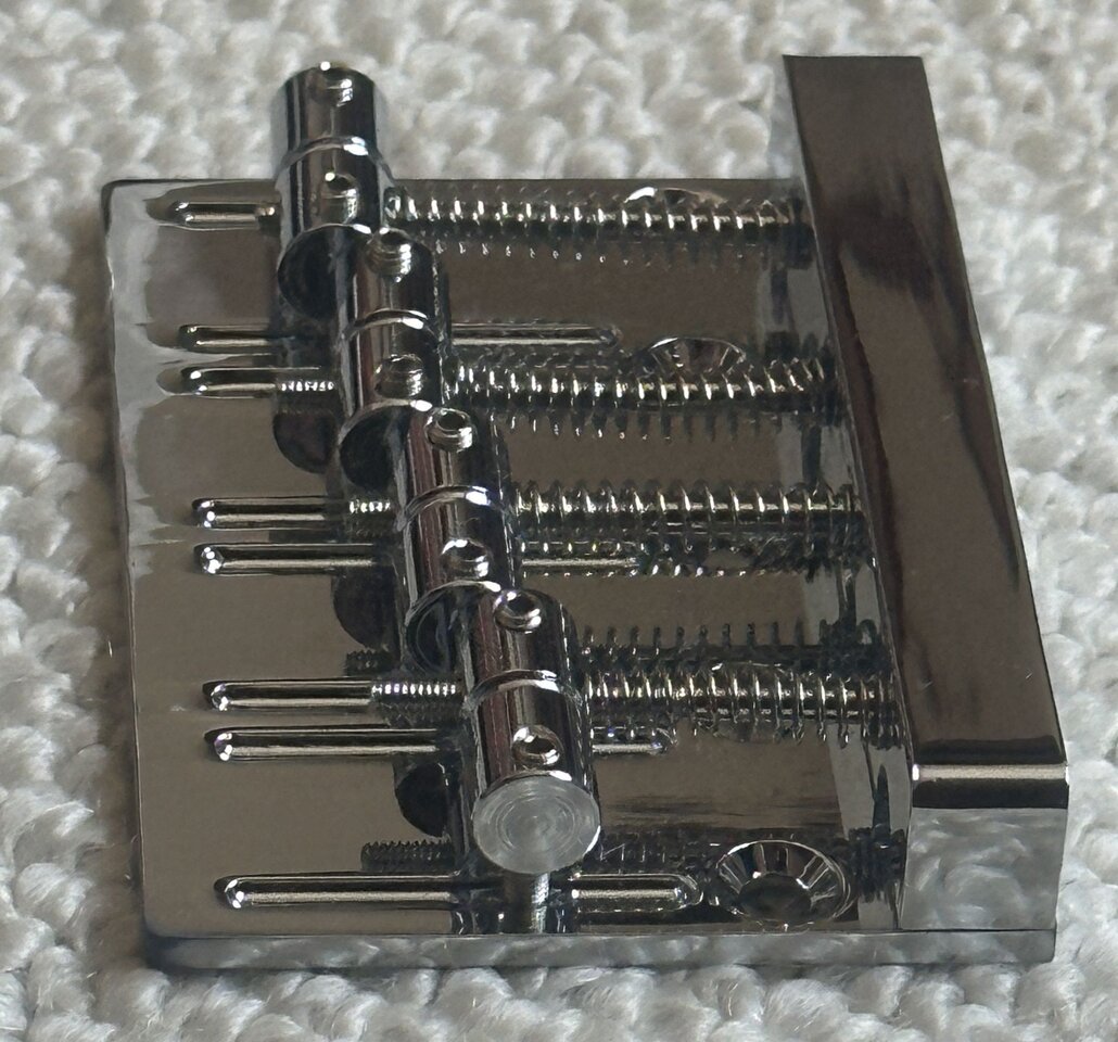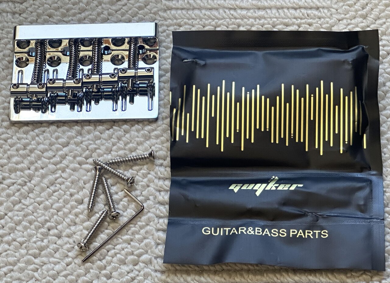 Diese zweiteilige Brücke ist entweder von Guyker oder Musiclily, ich habe auf jeden Fall noch eine Guyker Verpackung mit den Befestigungsschrauben und Inbusschlüssel dazu.