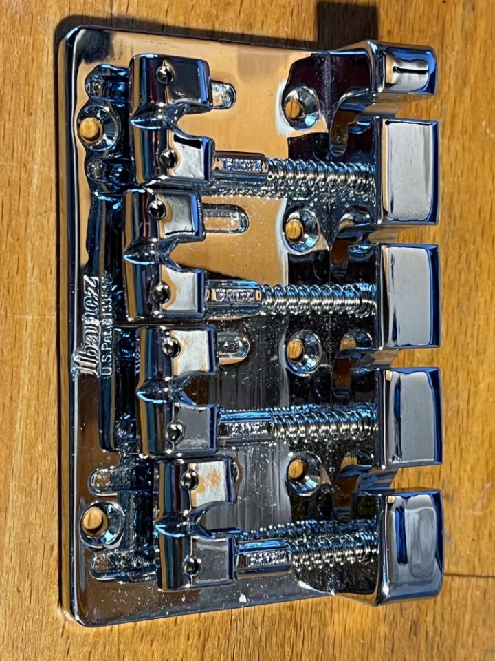 - Ibanez chrom für RB300, SR300DX, Chrom, Spacing 19mm, keine Ahnung zum Material, Saiten werden eingehängt. Soweit ich sehe nicht mehr beim Meinl erhältlich, hier für €15,- zzgl. P&P