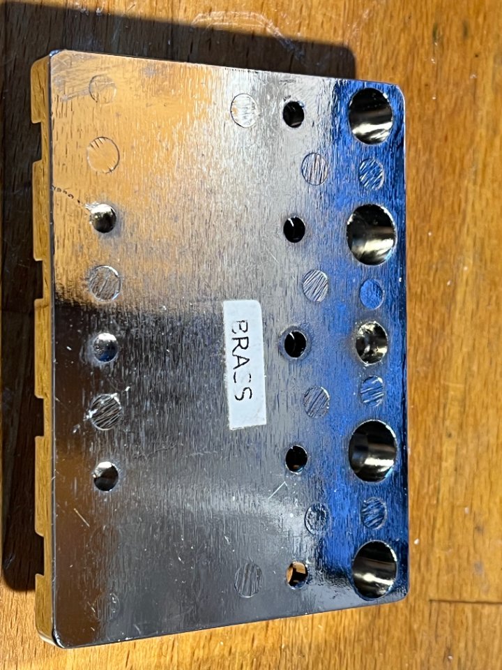 - Fender Hi Mass Bridge IV, Brass, Chrom, Spacing 19mm, Messing. UVP 48,99 Aktuell beim T für 36,- hier für €20,- zzgl. P&P