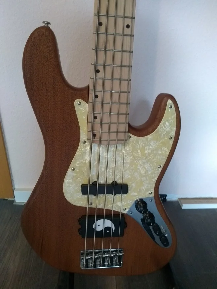 Ich biete hier einen aus edlen Komponenten zusammengebauten 5-Saiter Jazzbass (Jazz/Humbucker)an.