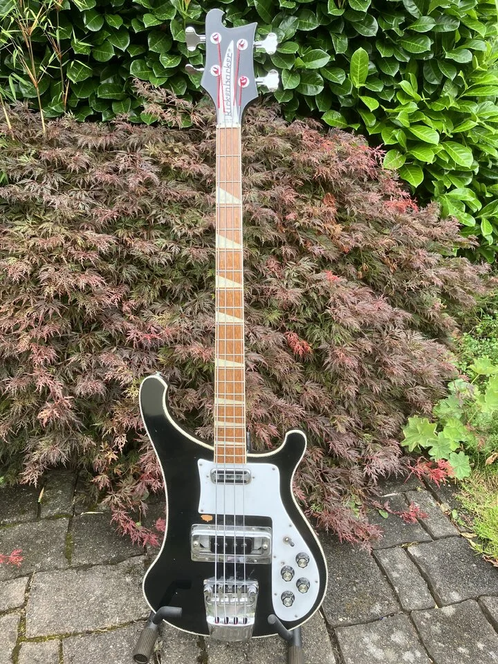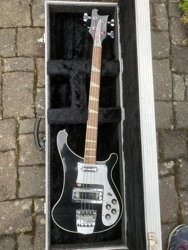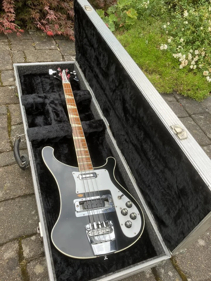 ich verkaufe meinen Rickenbacker 4001 Jetglo von 1973 in gutem, spielbereiten Zustand, er klingt wie man es erwartet, er kommt in seinem Alu-Flightcase, das voll funktionstüchtig ist, er hat noch das Checkerboard-Binding, die toothgap-Bridge, den originalen Toaster Hals-Pickup und die Grover Wavy-Tuner, wie üblich für 4001er, die vor Mitte des Jahres 1973 gebaut wurden. Zusätzlich hat er noch einen mini toggle switch als killswitch.