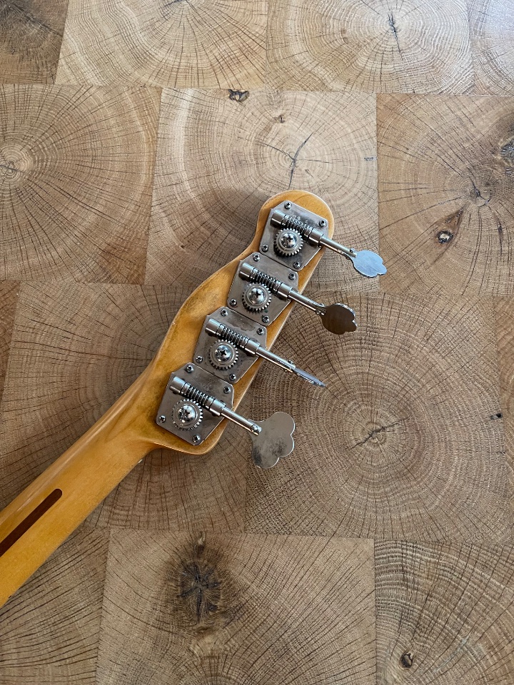 Der Neck ist von Fender (MIM Replacement) und hat auch eine Überarbeitung und eine Used Optik bekommen (Nitro).