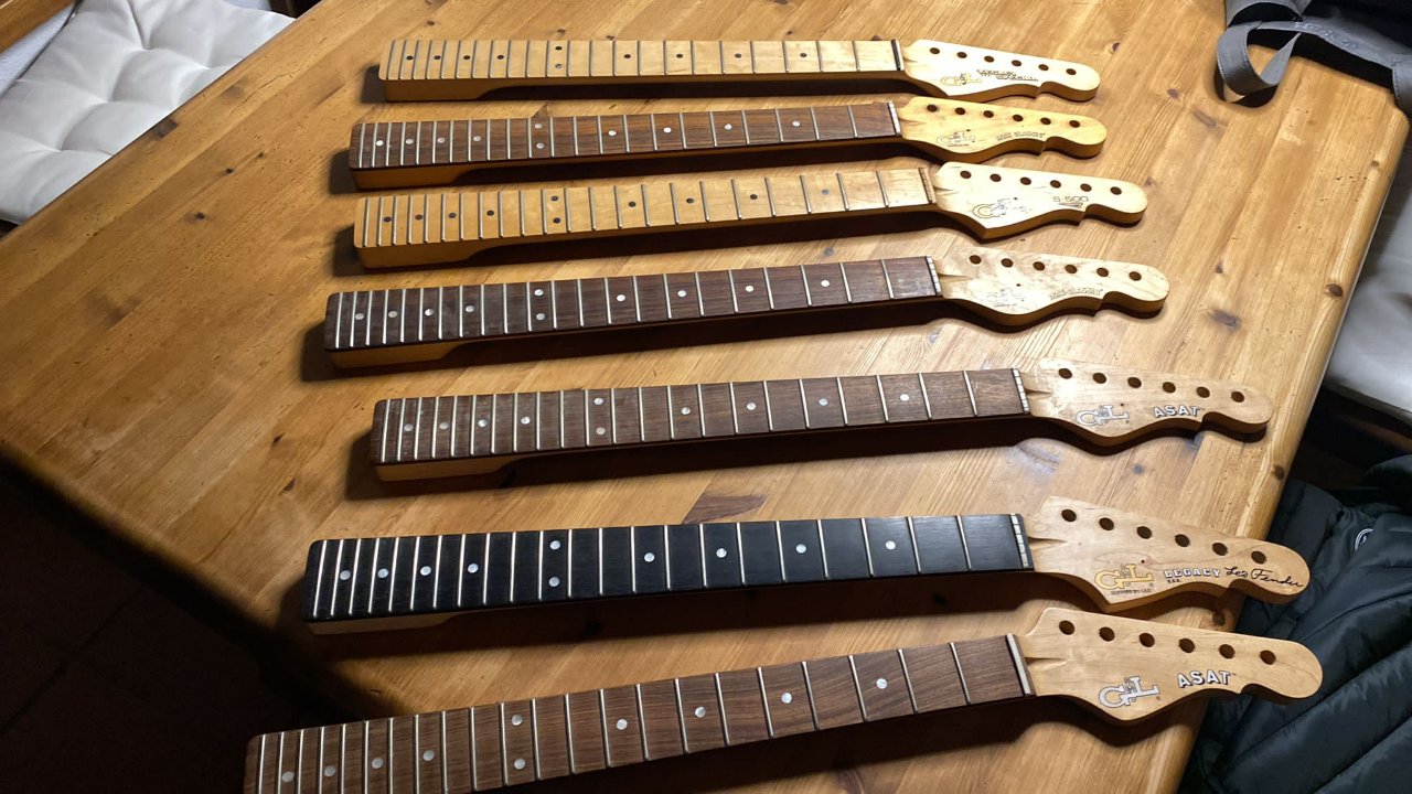 7 Hälse für G&L Legacy und Asat, 2x Maple, 1x Ebenholz, 4x Palisander, tw NOS, alle gt Zustand
