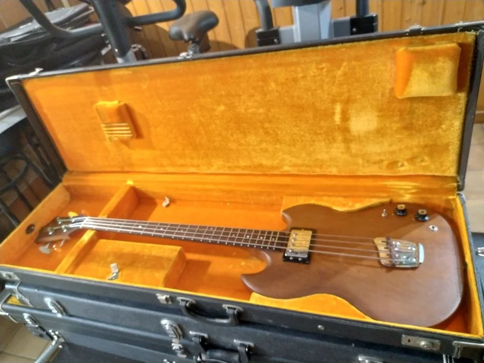 Mahagoni-Neck/Body, 1x Guild BiSonic-PU, kurze Mensur, O-Case