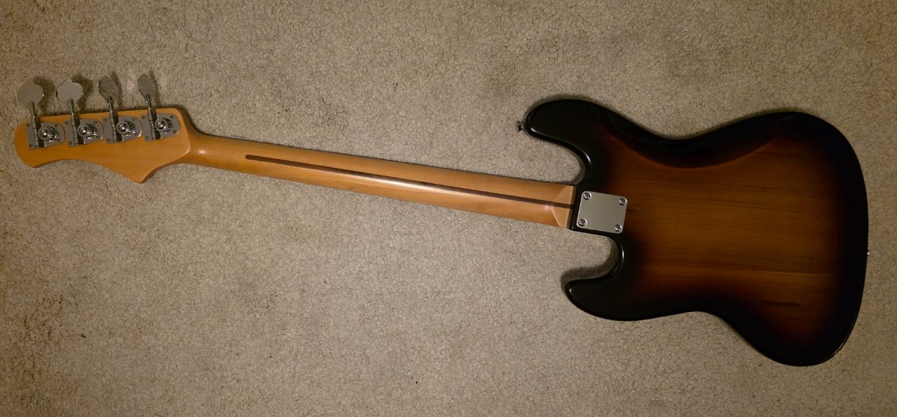 Es handelt sich dabei um einen Johnson, dessen Qualität garnicht mal so schlecht ist. Zum pimpen oder für Proberaum/Gartenfest/OpenStage jedenfalls gut genug. Hier ist auch "richiges Holz" verbaut und die Hardware liegt mindestens auf gutem Squier-Standard. Der Bass wiegt 4,45kg laut Personenwaage, was in der Kombination für eben DEN 70s-Ton sorgt.