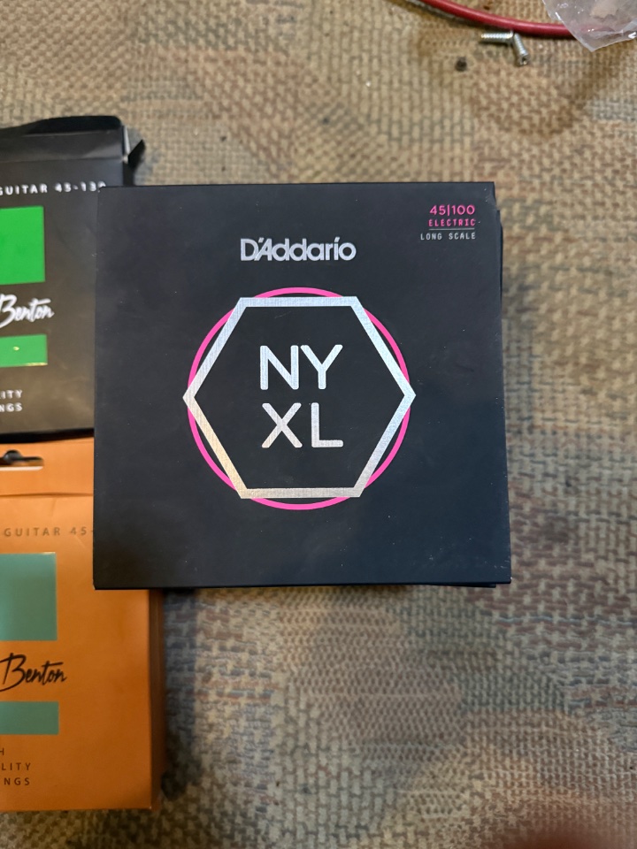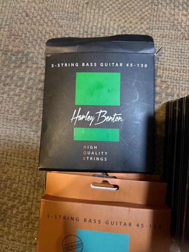 Weiterhin sind im Angebot 3 Sätze Harley Benton. Ebenfalls neu. Lediglich bei einer H Saite wurde mal Hand angelegt, allerdings nie ein Ton gespielt. Bei diesem Satz sind die Packungen der einzelnen Saiten geöffnet worden.