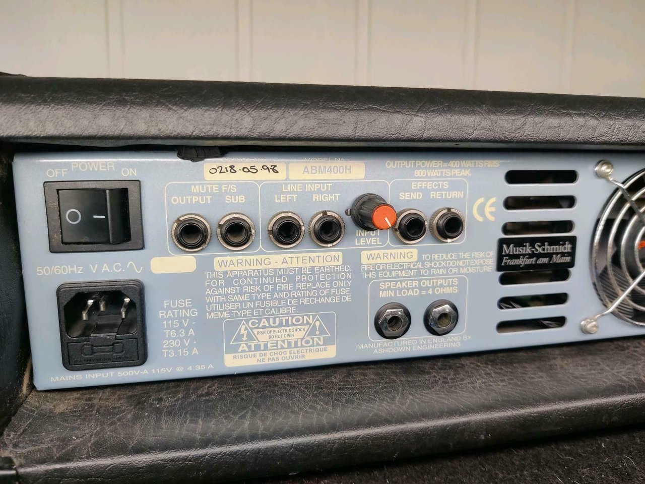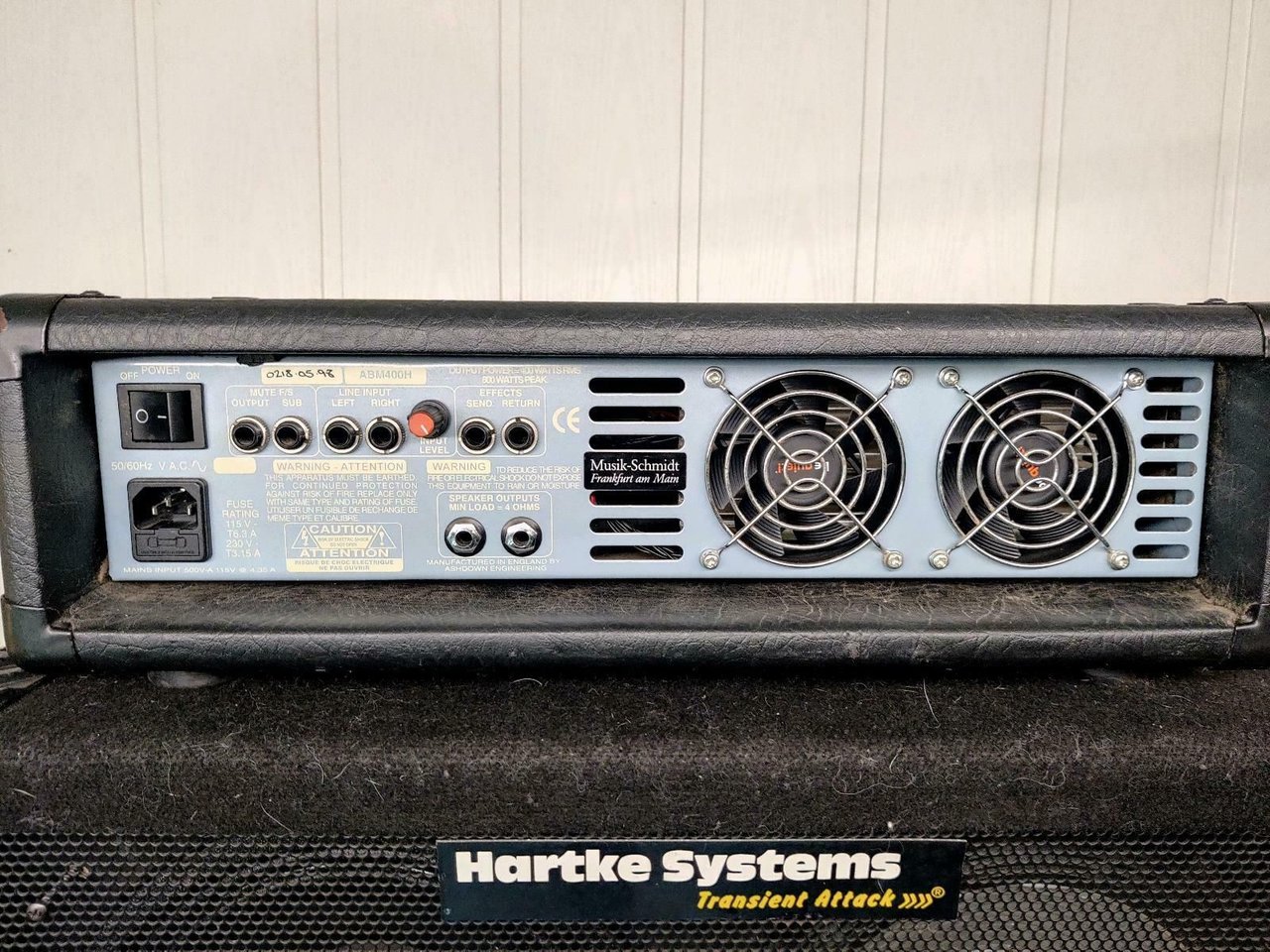 Technisch ist der Amp in einwandfreiem, überholten Zustand. Potis, Fader und Anschlußbuchsen wurden gereinigt oder mit Neuteilen ersetzt, VU Meter, EQ Board und ein paar Potiknöpfe wurden Period-correct aus einem Spenderamp von '99 erneuert. Außerdem gab's neue, leisere Lüfter.
