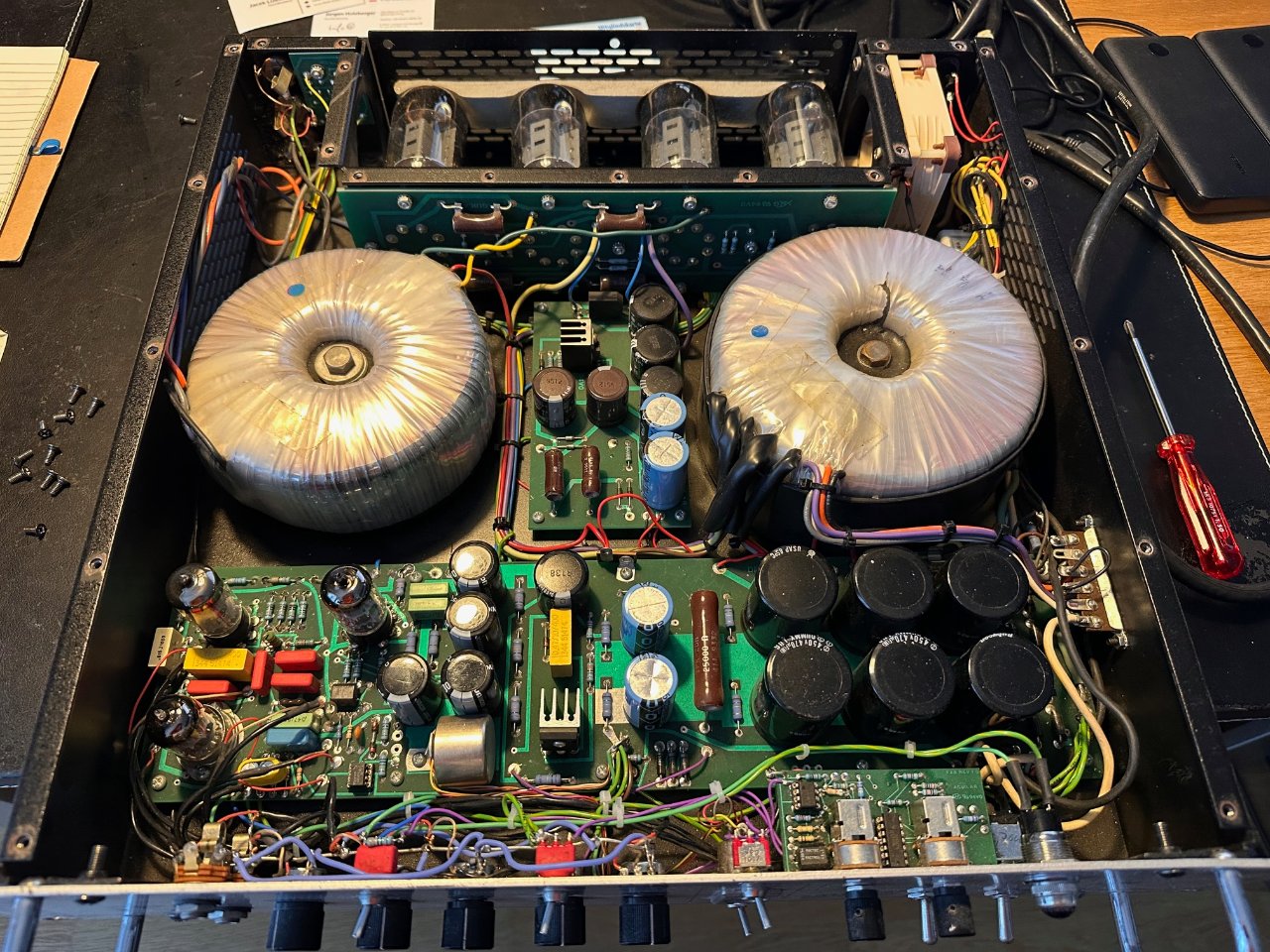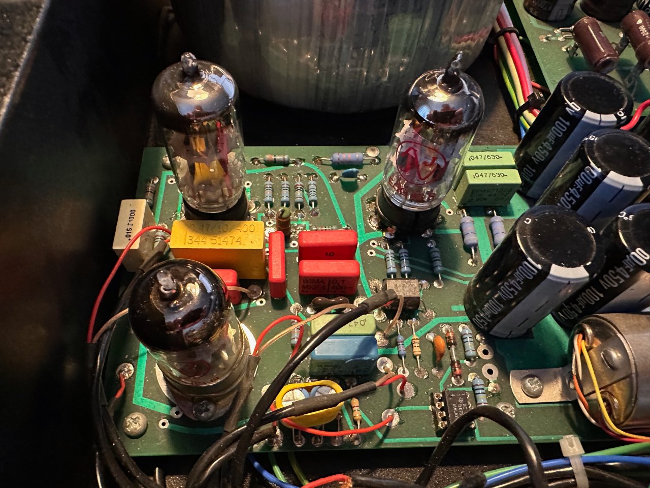 The noisy original cooling fan has been professionally replaced with a super low-noise Noctua fan. The preamp tubes are JJ ECC83S.