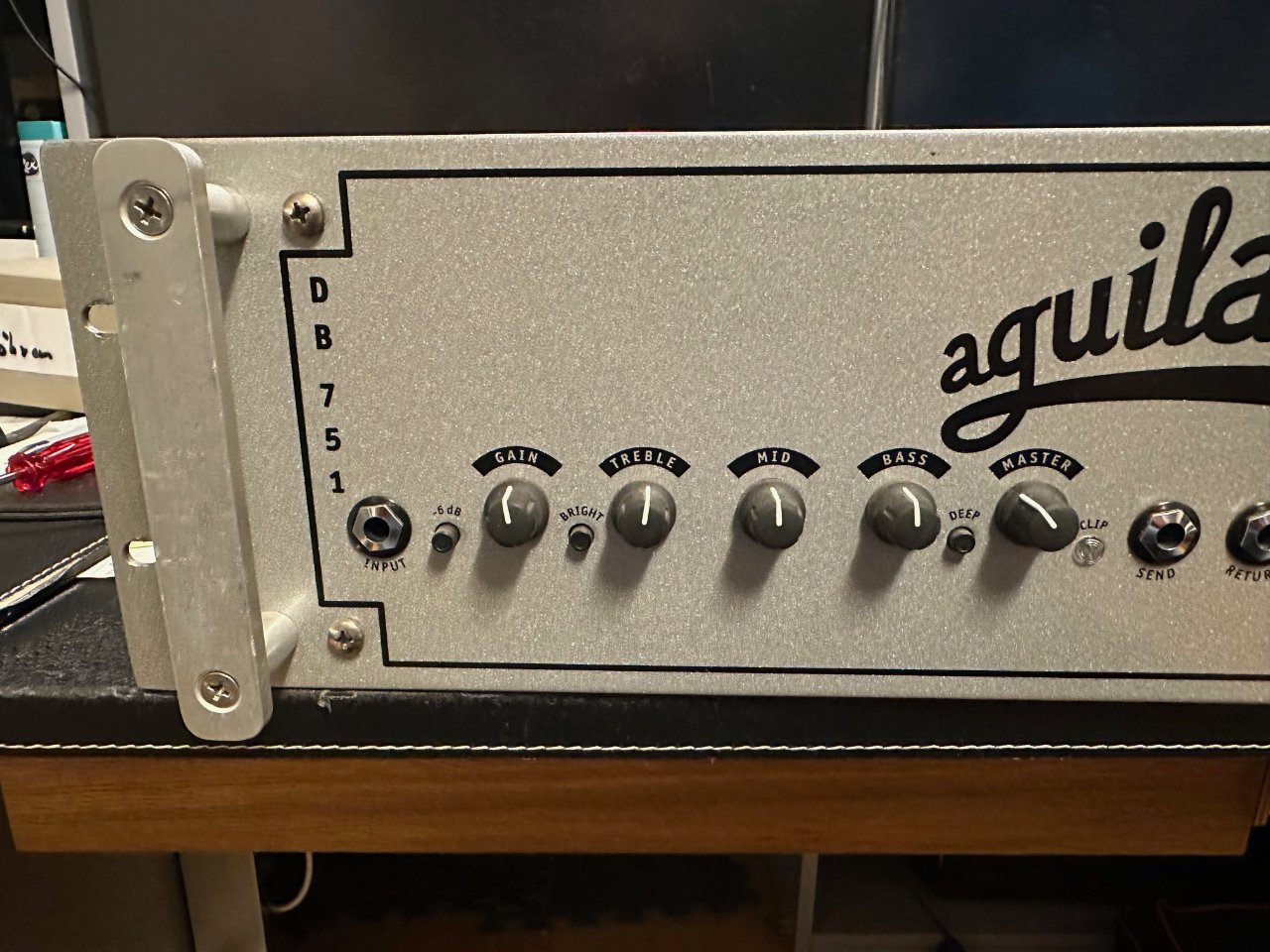 Clip Light: Flashes if the preamp is clipping. Turn down either the “Gain”, the EQ, or “Master” volume.