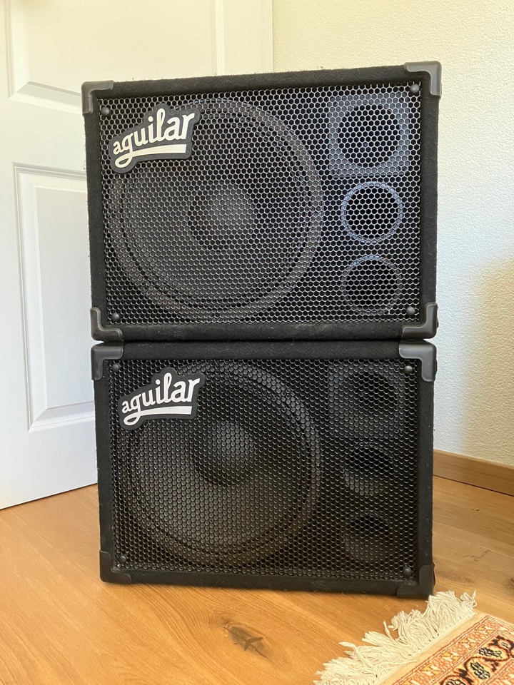 Verkaufe zwei Aguilar GS 112 Bass-Cabs in gutem und technisch einwandfreiem Zustand: Jeweils 8 Ohm, 300 Watt, beide! mit regelbarem Hochtöner, jeweils 1 Speakon- und 1 Klinkeneingang. Mit entsprechendem Amp auch für mittelgroße Veranstaltungen genügend Power. Preis gilt für beide Cabs zusammen.