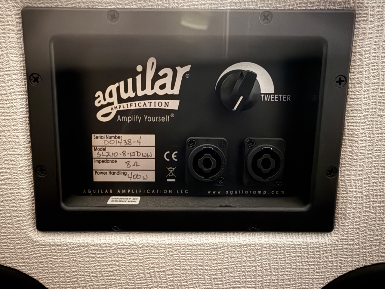 The cabinet is in excellent condition, both technically and cosmetically. No dents, no tears in the tolex, no functional issues. It has only been used in my music room at home.