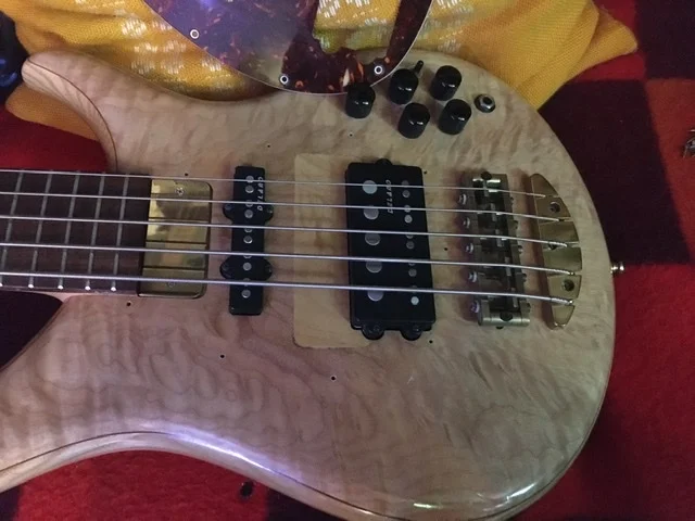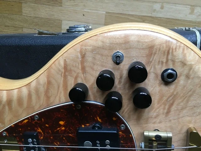 An alle klugscheisser: ja. Der Bass ist ( professionell) verbastelt aber imho so deutlich brauchbarer als im original Zustand. Und optisch deutlich schicker.
