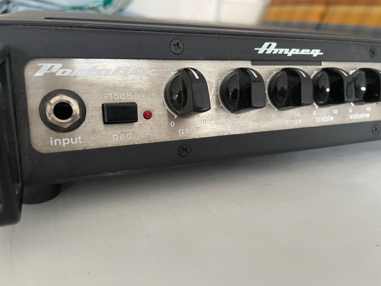 Das Topteil funktioniert einwandfrei, wurde die letzten Jahre viel genutzt (Proberaum sowie Bühne) und hat somit auch ein paar Gebrauchsspuren (Kratzer; siehe Fotos).