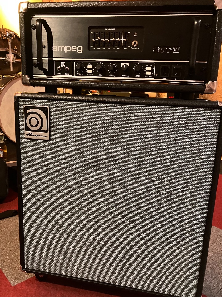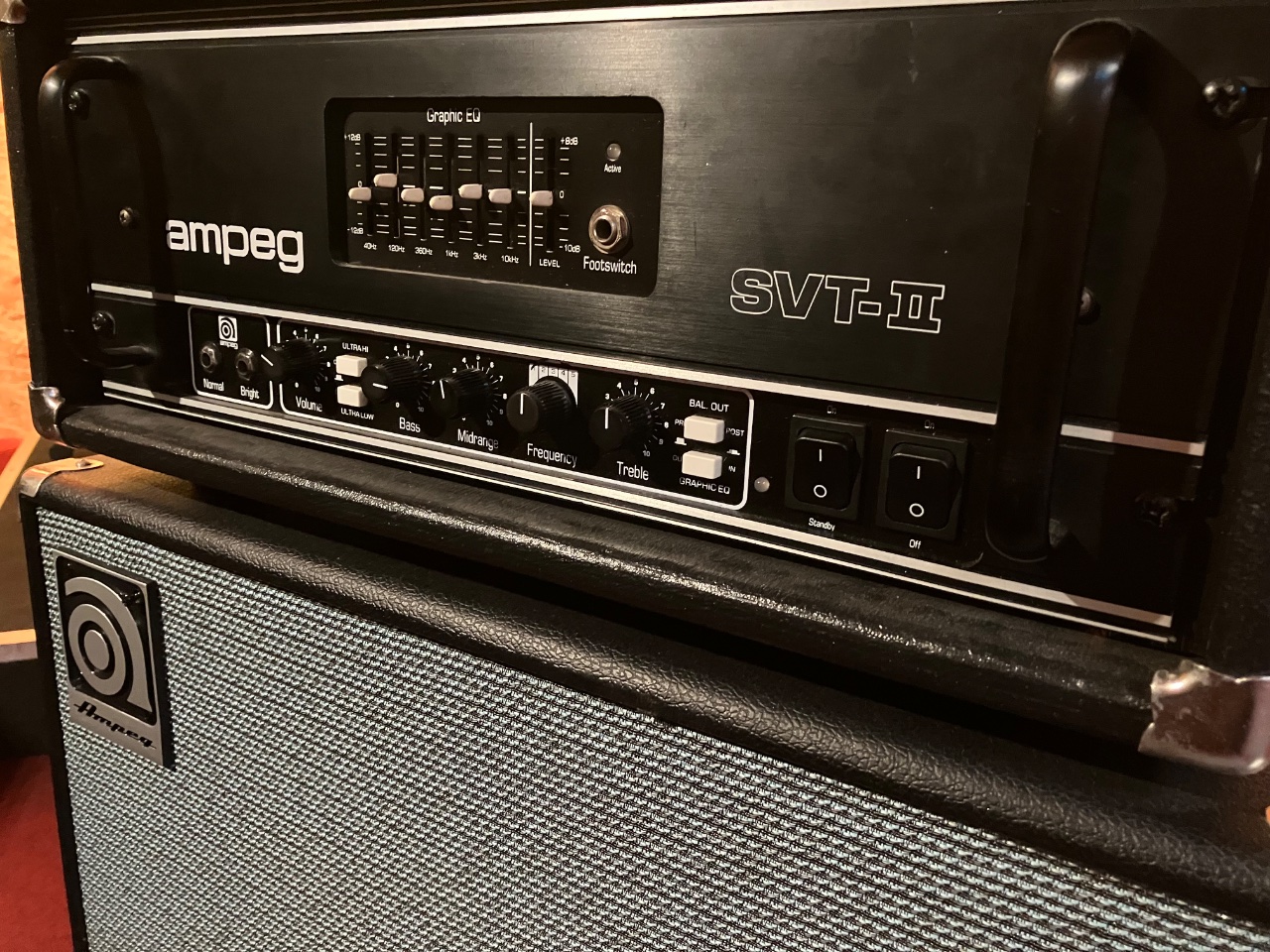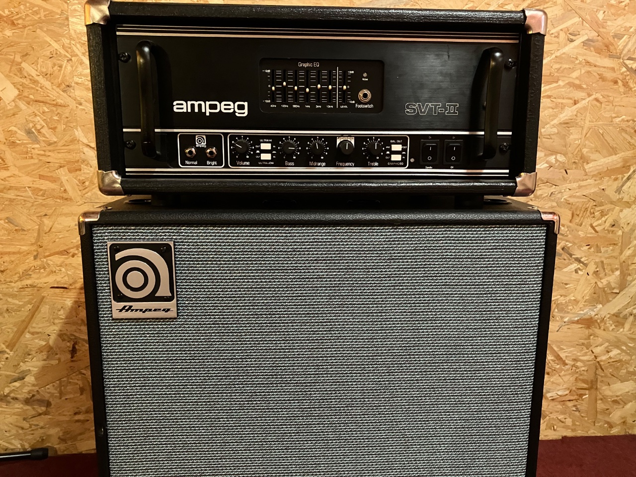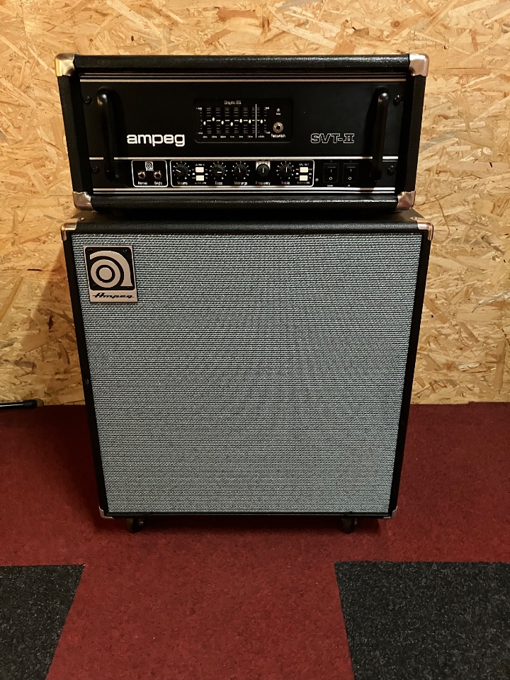 Gebe mein Ampeg Stack ab. Die Kombi aus den 300 Röhren Watt und der mit 600 W belastbaren 212er reicht für alle Bühnen, die man als Nichtprofi spielt locker aus. Das Set kann sehr sehr laut! Der Amp läuft sauber und ist regelmäßig gewartet worden, die Box klingt wie am ersten Tag. Der gesuchte Ampeg svt 2 non pro hat keinerlei Hitzeprobleme wie sein Nachfolger (die 6 Endstufenröhren sind in Reihe verbaut) und drückt ohne Ende einen straffen Basston raus. Über den Sound der alten made in USA SVT 2 ist genug geschrieben worden. Der Amp ist in einem DIY Multiplexcase (Strukturlack) verbaut und eben noch made in USA. Gebaut wie ein Panzer und auch ähnlich schwer