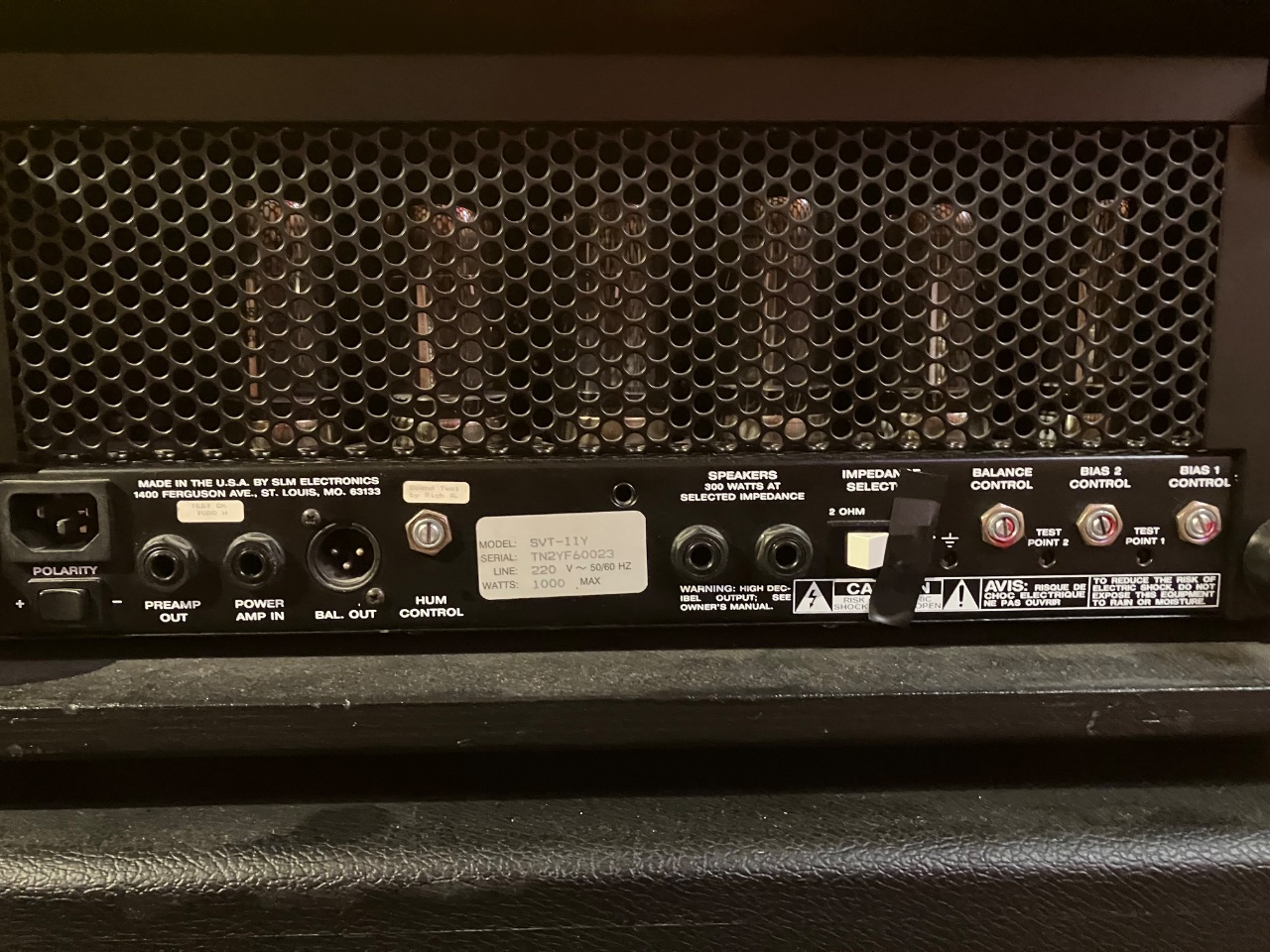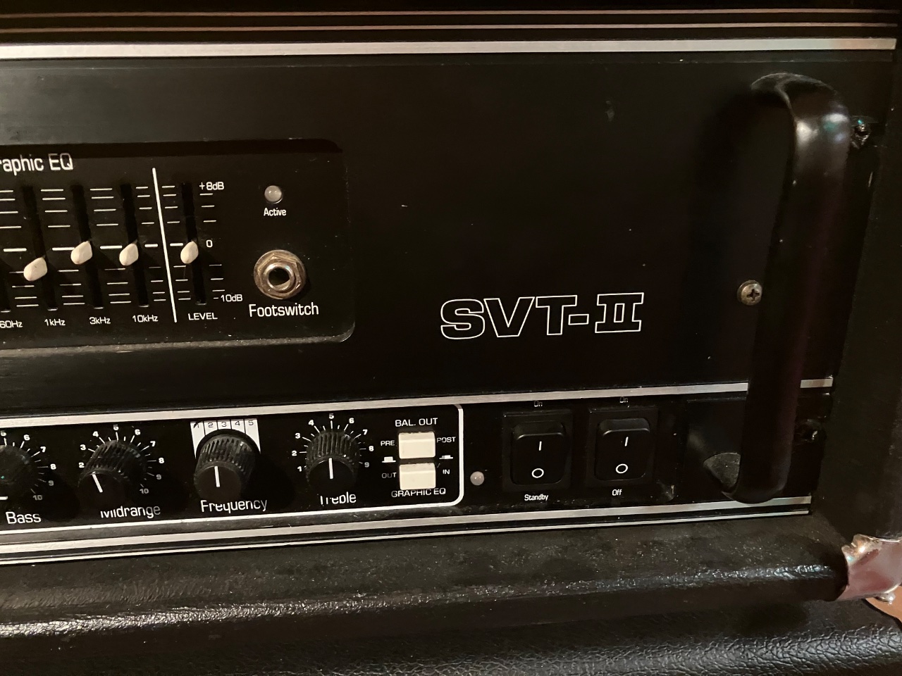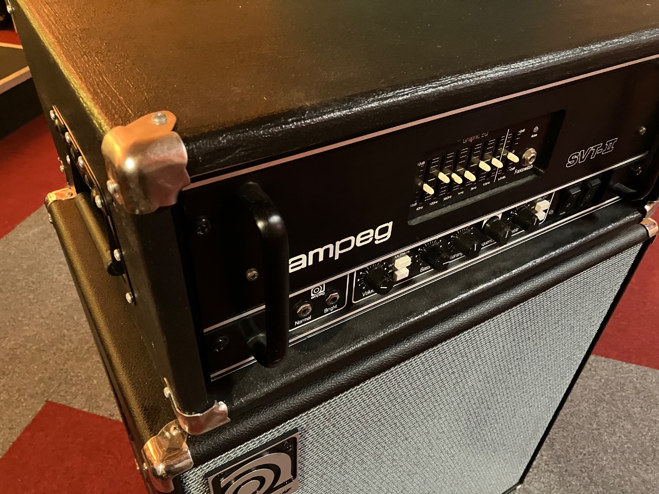 Gebe mein Ampeg Stack ab. Die Kombi aus den 300 Röhren Watt und der mit 600 W belastbaren 212er reicht für alle Bühnen, die man als Nichtprofi spielt locker aus. Das Set kann sehr sehr laut! Der Amp läuft sauber und ist regelmäßig gewartet worden, die Box klingt wie am ersten Tag. Der gesuchte Ampeg svt 2 non pro hat keinerlei Hitzeprobleme wie sein Nachfolger (die 6 Endstufenröhren sind in Reihe verbaut) und drückt ohne Ende einen straffen Basston raus. Über den Sound der alten made in USA SVT 2 ist genug geschrieben worden. Der Amp ist in einem DIY Multiplexcase (Strukturlack) verbaut und eben noch made in USA. Gebaut wie ein Panzer und auch ähnlich schwer