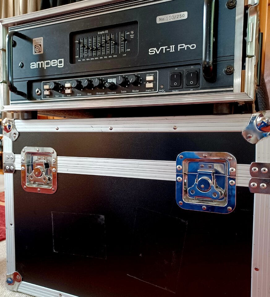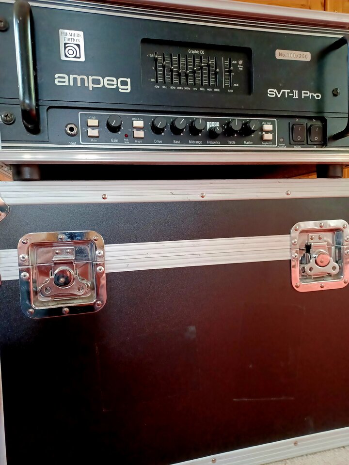 SVT II Pro Limited Edition. 100/250 (90er), USA, kompl. "refurbished". Alle Röhren neu, Alle Elkos neu, 2 zusätzl. Lüfter, verstärkes SKU-Rack mit entspr. Lüftungsöffnungen, funktioniert absolut Top, vor allem der "Drive Regler" macht Freude. Im überholten Zustand unter 10 Stunden gespielt, wird aus Altersgründen in Zusammenhang mit dem Gewicht verkauft. In diesem Zustand wohl der einzige von ehemals 250 Stück weltweit.