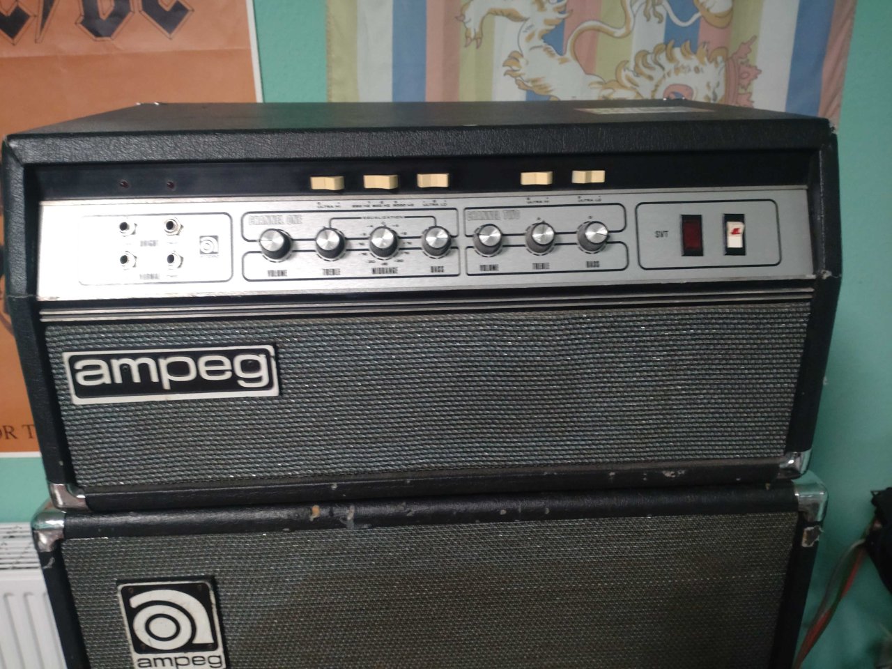 Ich biete meinen Ampeg SVT Verstärker und Box aus den 1970ern.