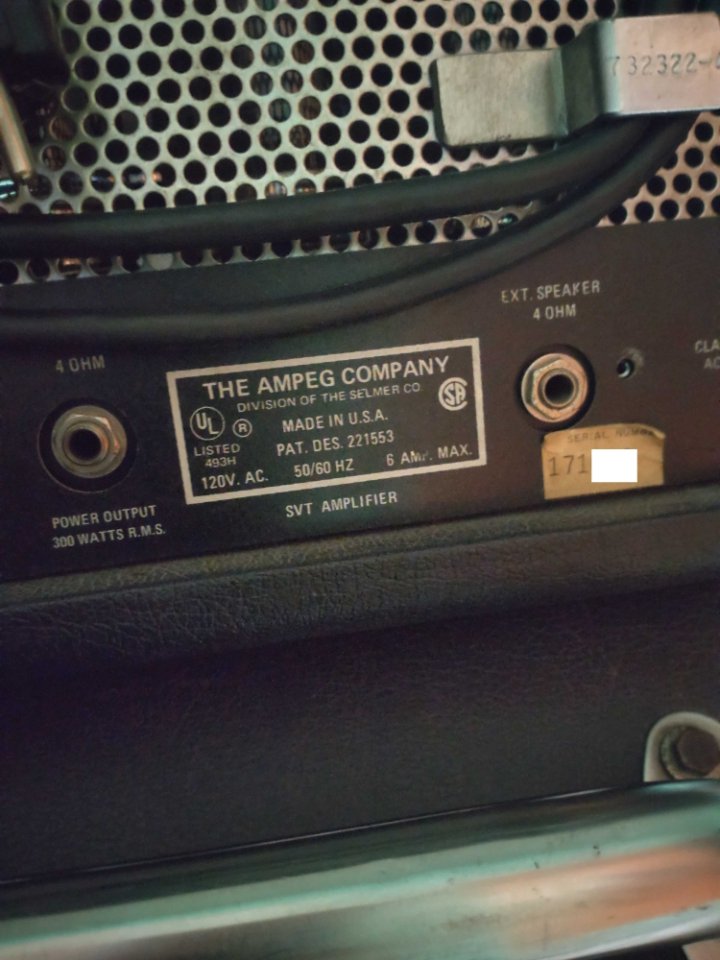 Mir wurde gesagt, dass dieser SVT von 1975 ist, da diese Version 1975 auf den Markt kam. Auf der Rückseite steht "THE AMPEG COMPANY DIVISION OF THE SELMER CO".