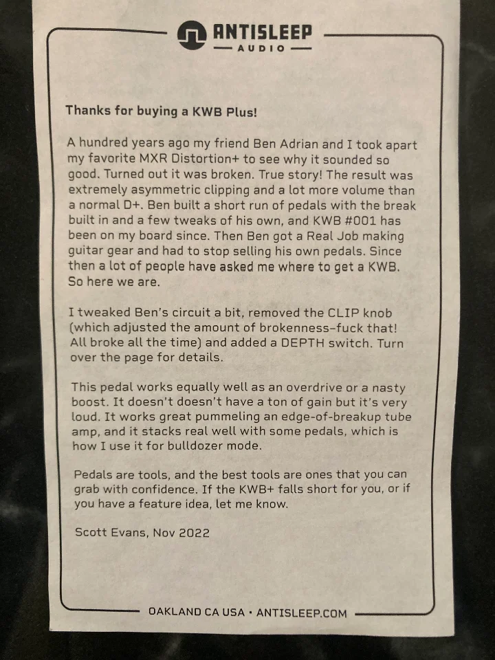 Antisleep Audio/ Scott Evans von Kowloon Walled City hat seinen Signature Sound in Pedal Form gebaut.