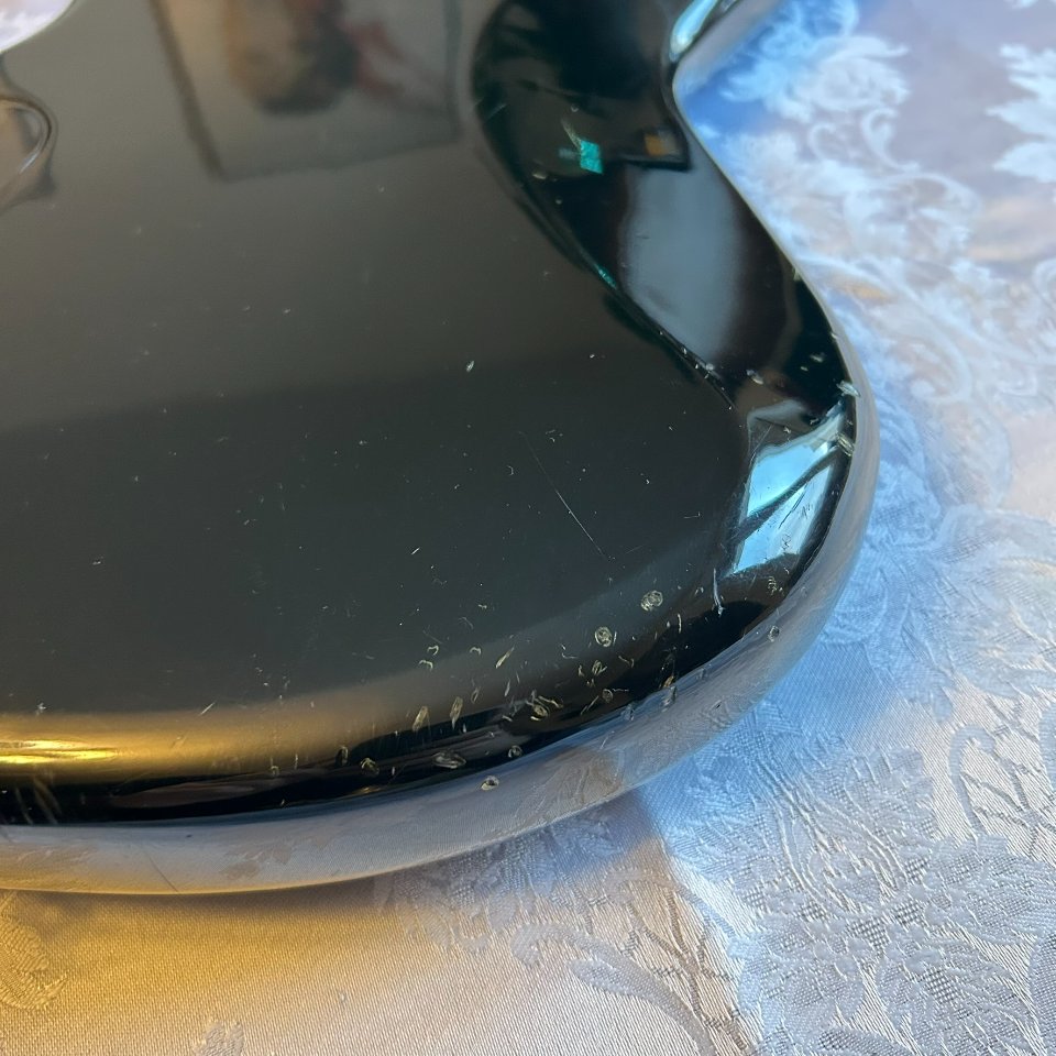 The bass has had some use - the body, especially the back, shows numerous scratches and dents, but no paint chips. Signs of wear are also visible on the frets; currently, you can easily adjust the action over the 12th fret to a comfortable 2 mm, but to go even lower it would be worth sanding (there's enough material). I didn't want to mess with that, so I'm simply selling it at a lower price. The hardware, however, is in excellent condition - the bridge and tuners look very good. There are no issues with intonation or truss rod action.