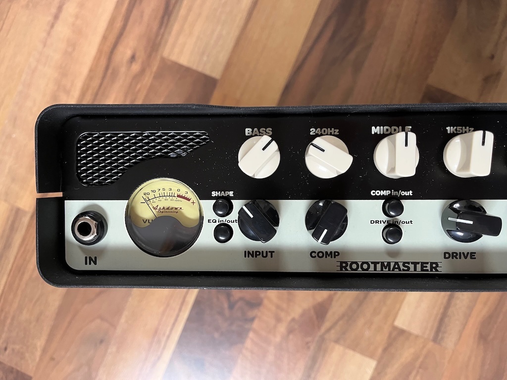 - jeweils schaltbar: 5 Band EQ, Compressor, Drive & PreShape (cleaner mittenarmer Sound)