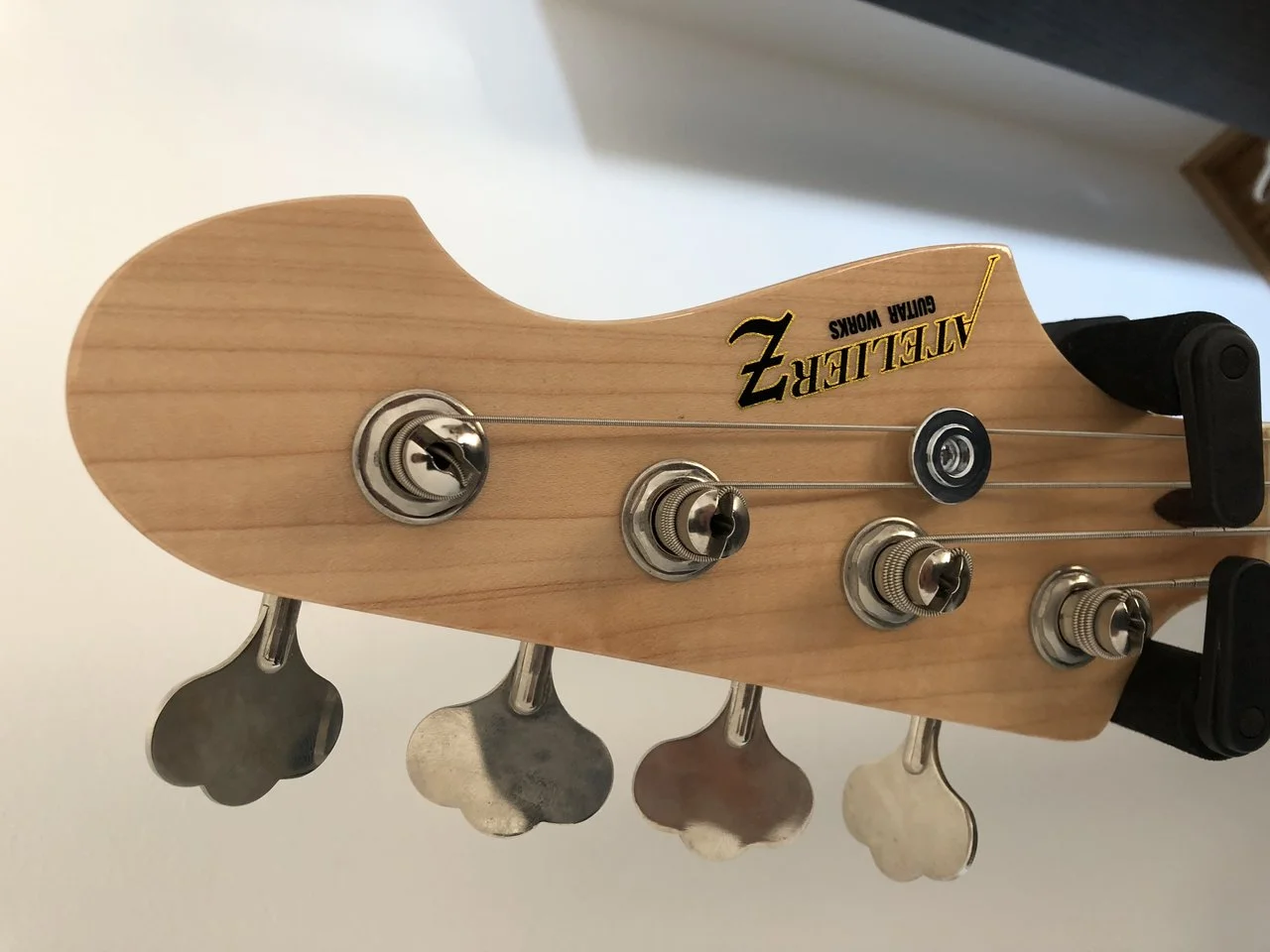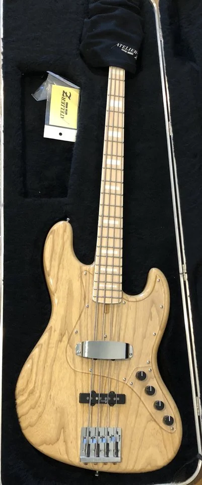 Ich möchte meinen Ateilier Z M245 mit Bartolini Preamp verkaufen. Wie zu sehen hat der Bass hat einen Esche Korpus und Ahorn Hals. Der Preamp ist 2-bandig und man kann ihn aktiv/passiv(Push/Pull Knopf) schalten.