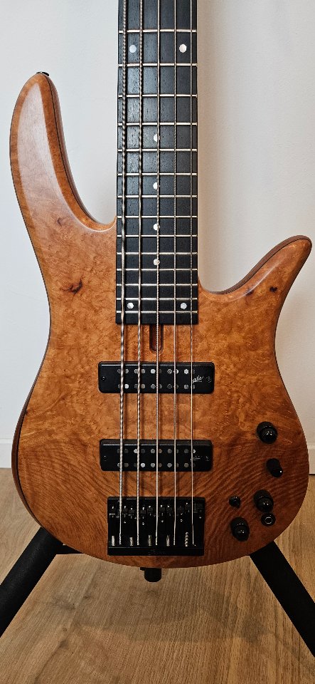 Dieser Bass stammt aus einer Sonderserie, laut Vorbesitzer @Hen existieren wohl nur 8 Stück weltweit. Der Standard 3Band Preamp wurde auf 4Band nachgerüstet: Volume, Tone, Balance, Low, High, Low Mids, High Mids, akiv/passiv.