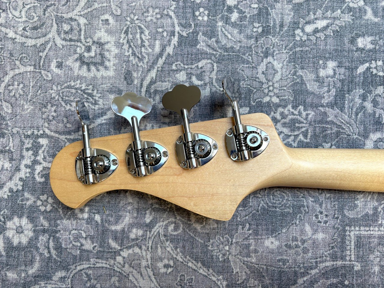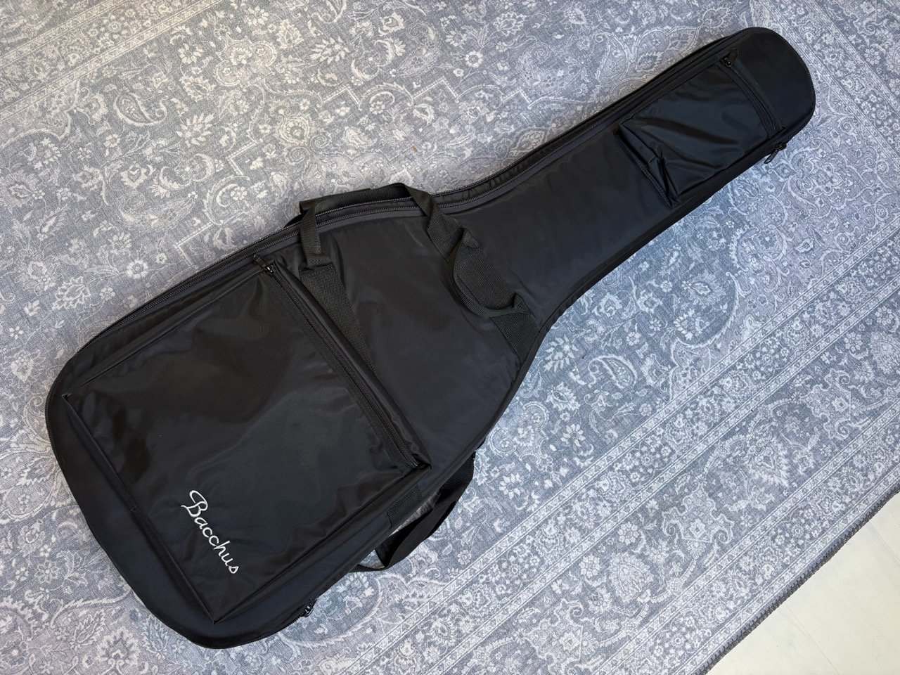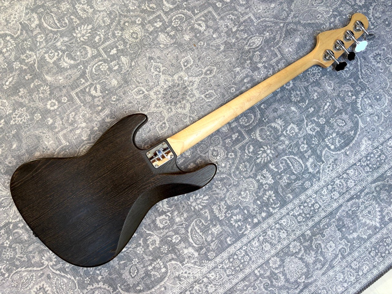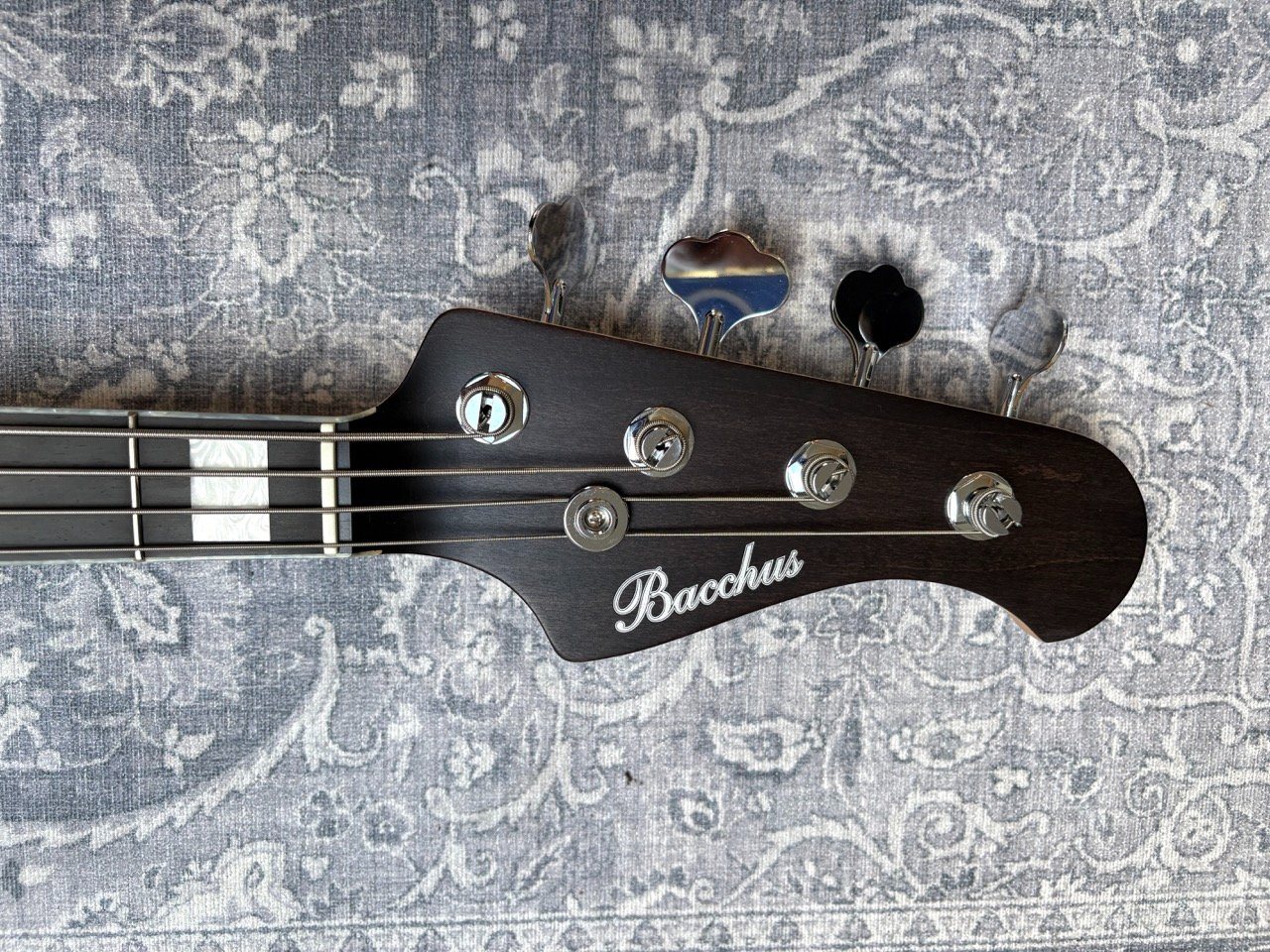 High-end Jazz Bass from the Japanese brand Bacchus, built in 2010. It is a passive bass built from light ash, with an ebony fretboard with pearl block inlays and pearl binding. It has high quality Gotoh hardware and is very light at 3,9 kilos.