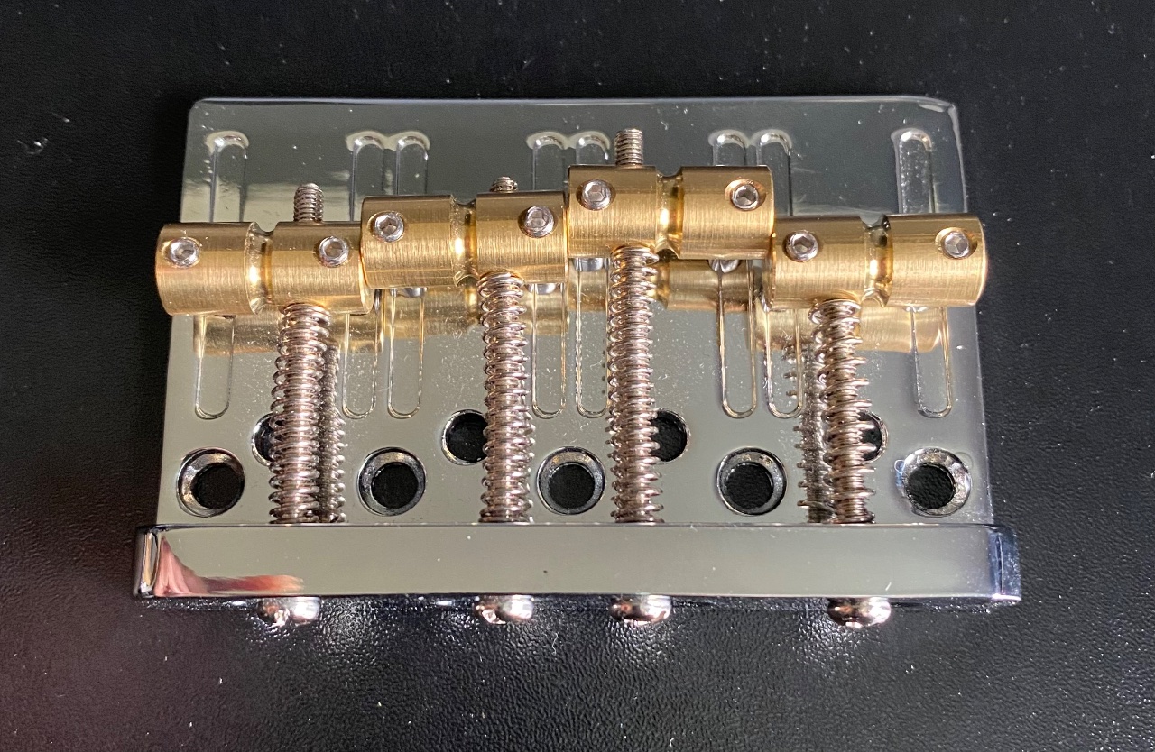 Musiclily Pro, 19 mm 4-Saiter Bass Hardtail Bridge, Messing Saitenreiter und Stahlplatte, Chrom