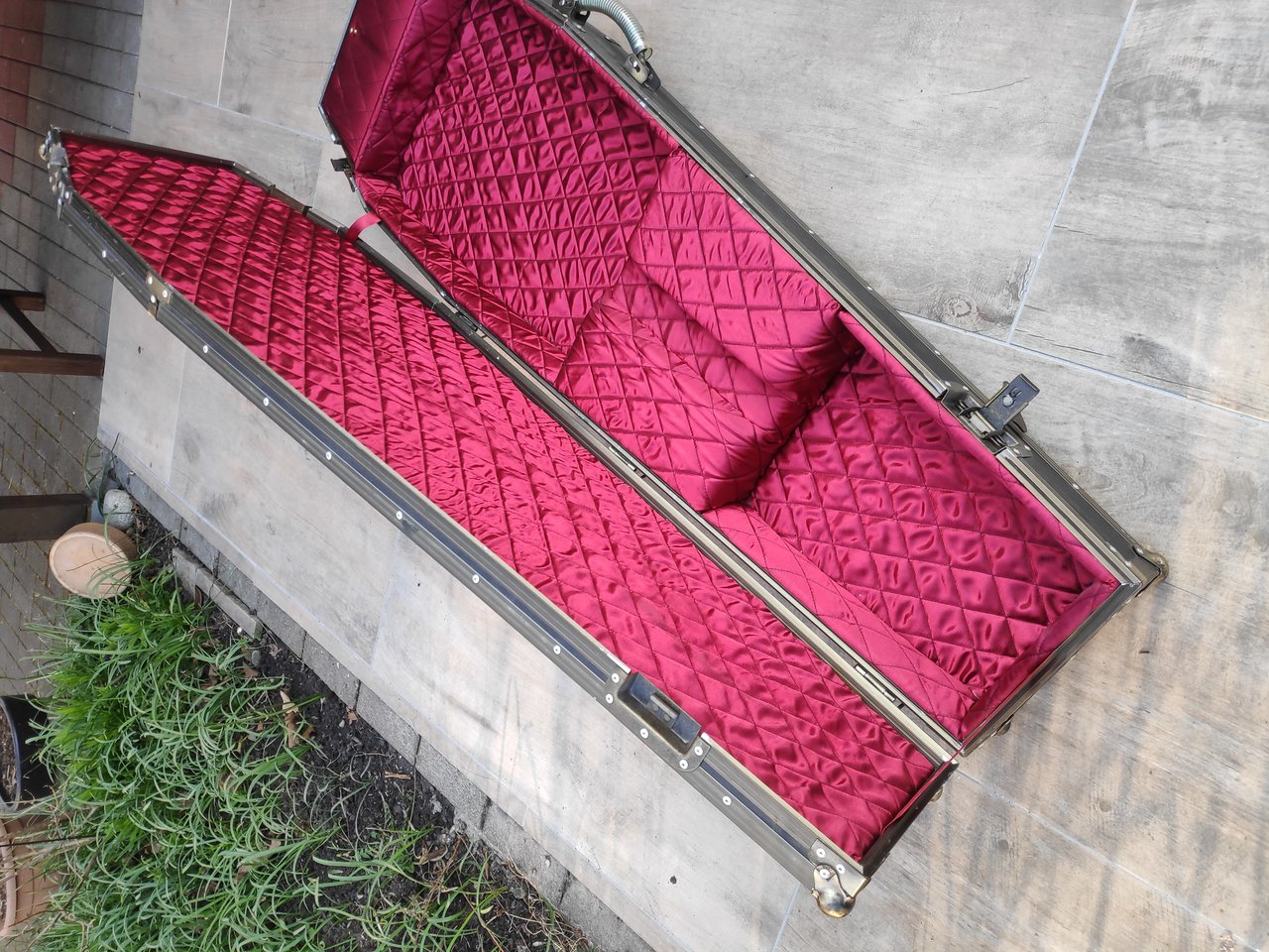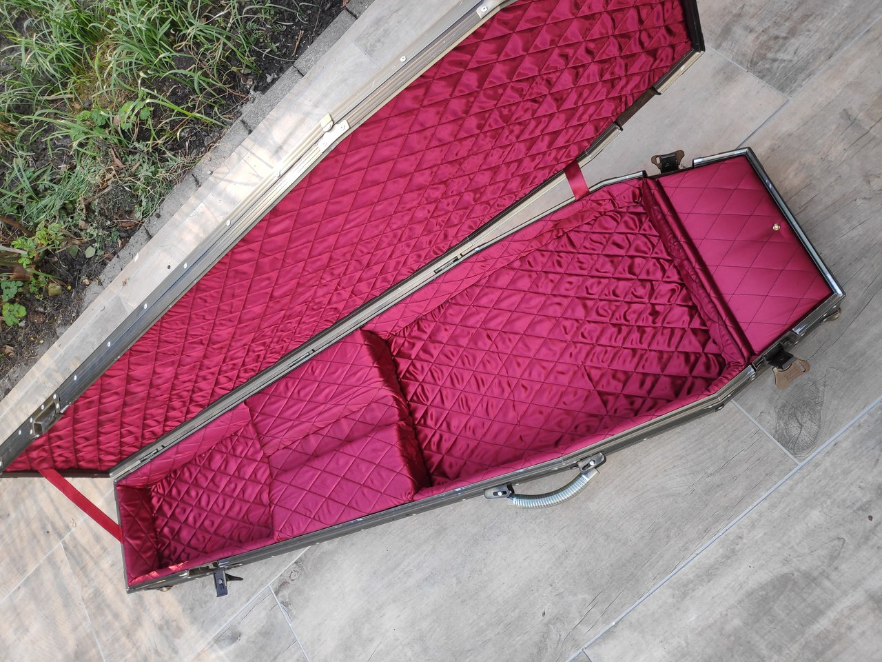 Kultiger Koffer im Sarg-Design für Bass Gitarre original von Warwick.