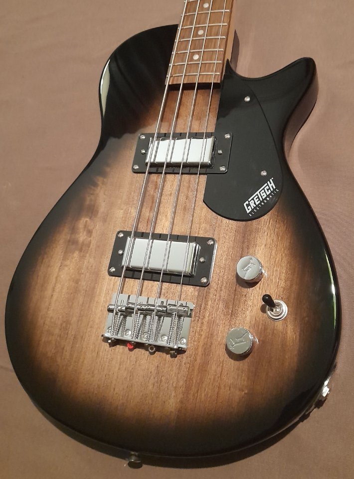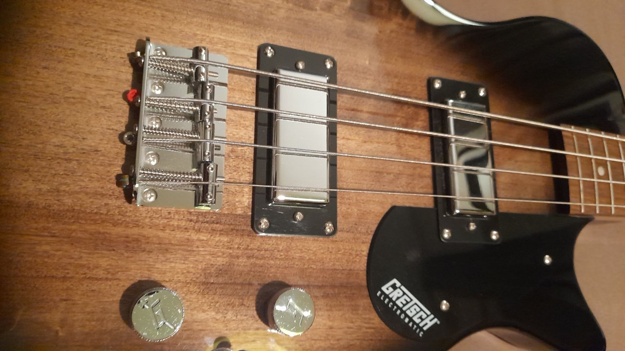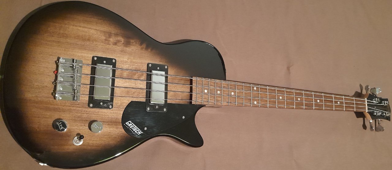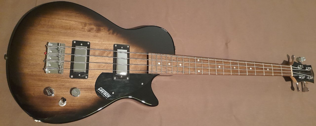 E-Bass Gretsch Electromatic Junior Jet Bass II Short-Scale, teure Gotoh Mechaniken nachgerüstet, eingestellt vom Gitarrenbauer Karsten Helmers aus Delmenhorst, neuer Knochensattel. Leichtgewicht, sehr bequem zu spielen. Wohnzimmer-gepflegt. Hat kaum das Haus verlassen.