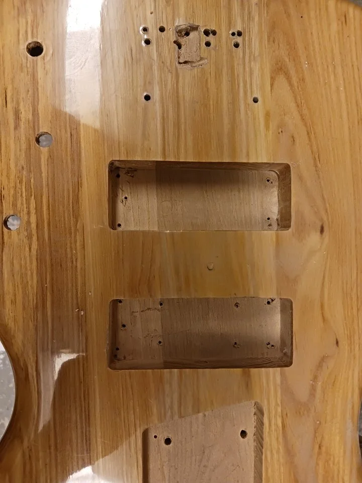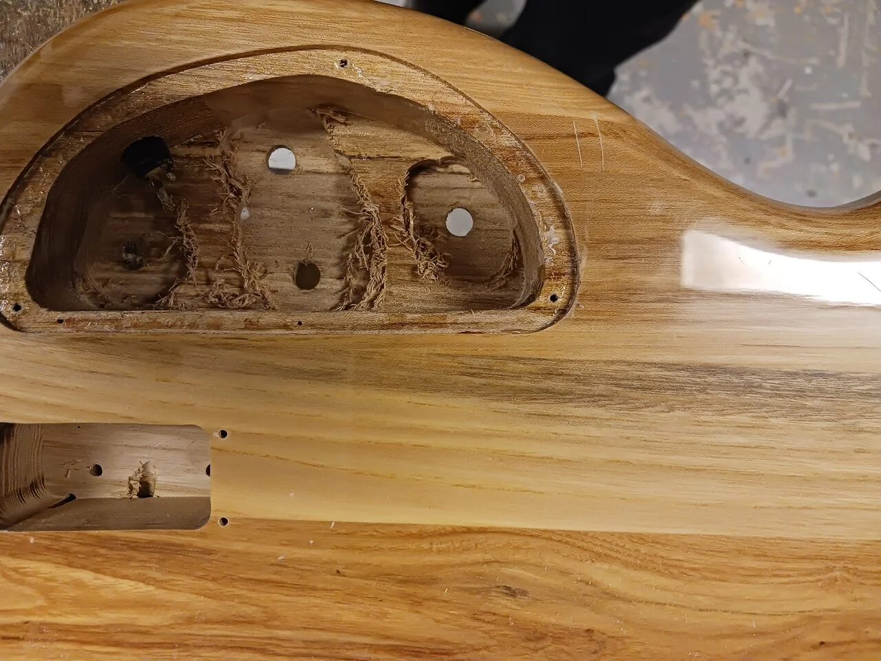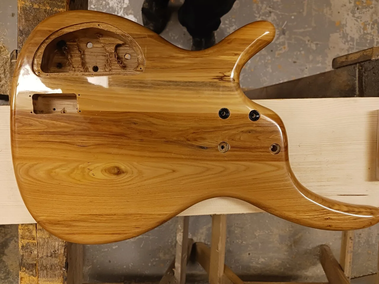 Bass Korpus aus 3 Teilen Esche massiv. Für 5 Saiter Hals.