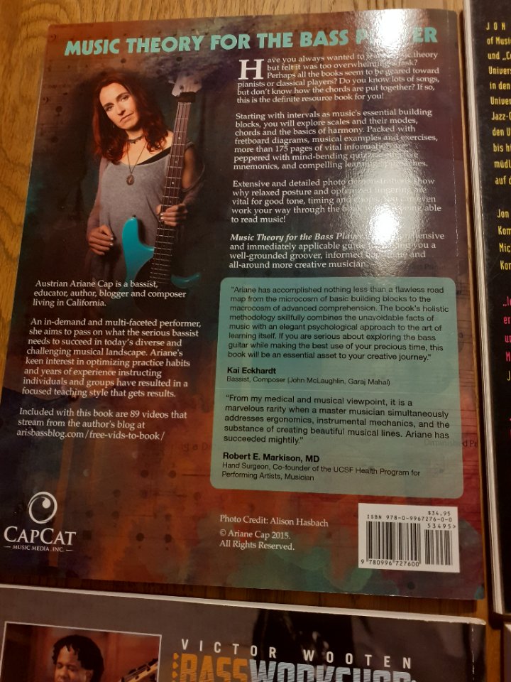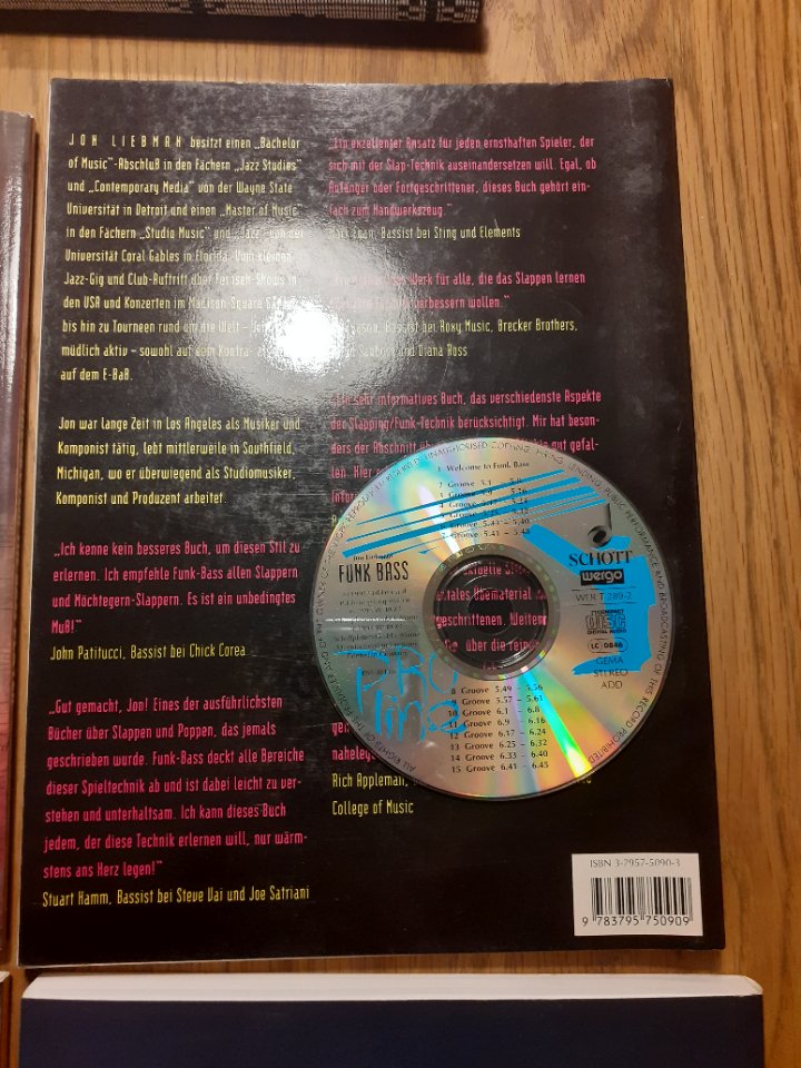 Bass Lehrbücher von Victor Wooten, Ariane Cab, Marcus Miller u. John Liebman.