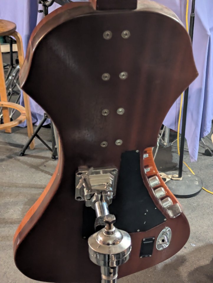 Der EUB ist mal vor vielen Jahren von Bassart nach Vorgabe für einen bekannten braunschweiger Bassisten (Osterloh?) gebaut worden, der machte dann irgendwann die Runde, ich bekam ihn von einem Kumpel, der auch hier im Foum ist, dessen Name ich aber gerade nicht parat habe, und dann stand der die letzten 3? 4? 5? Jahre mehr oder weniger ungenutzt im Proberaum rum.