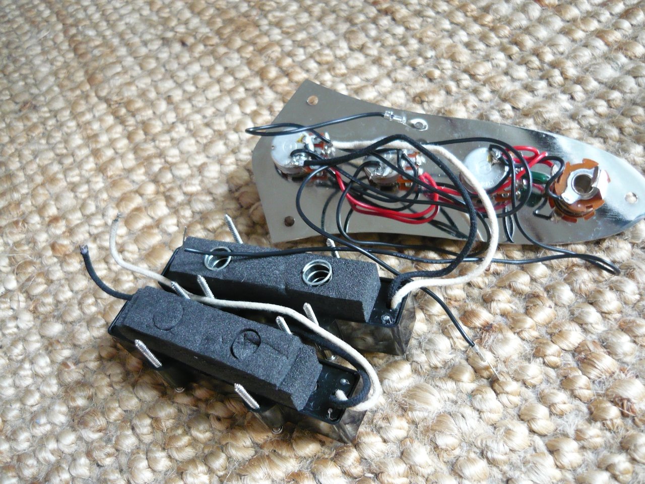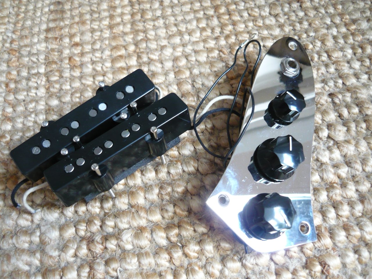 Squier Classic Vibe Jazz Bass Pickups und Elektronik mit Kontrollplatte.