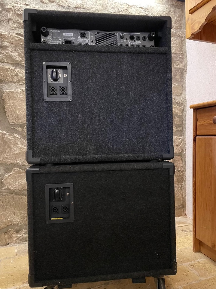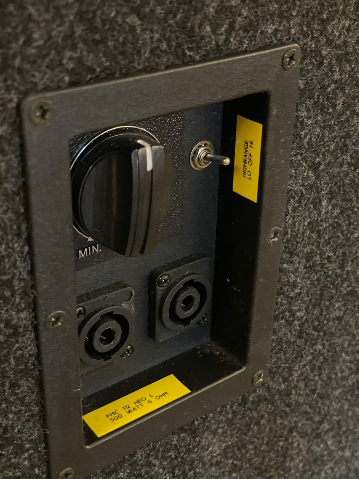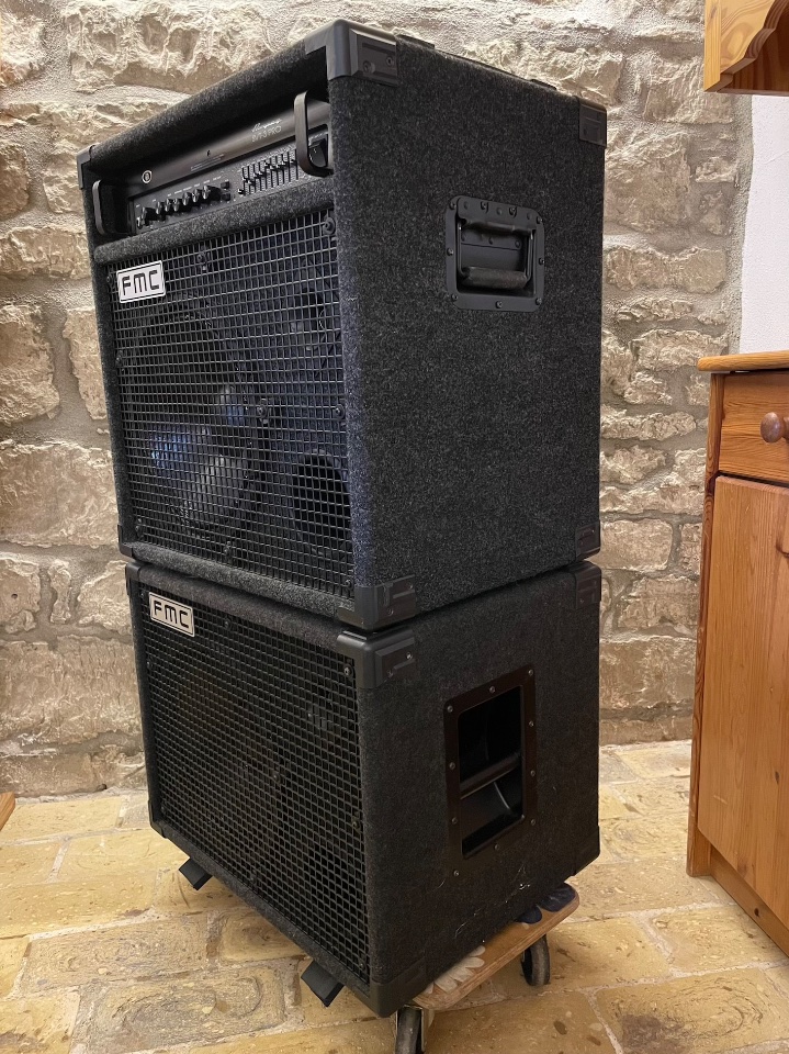 Bassbox FMC, Typ FMC 112 Neo L, 250 Watt RMS, 8 Ohm, regelbares Horn, Filzbezug, Leichtbau, 2 Griffe seitlich; Maße BHT: 53x41x40 cm (Neupreis 2011: 395,00 Euro)