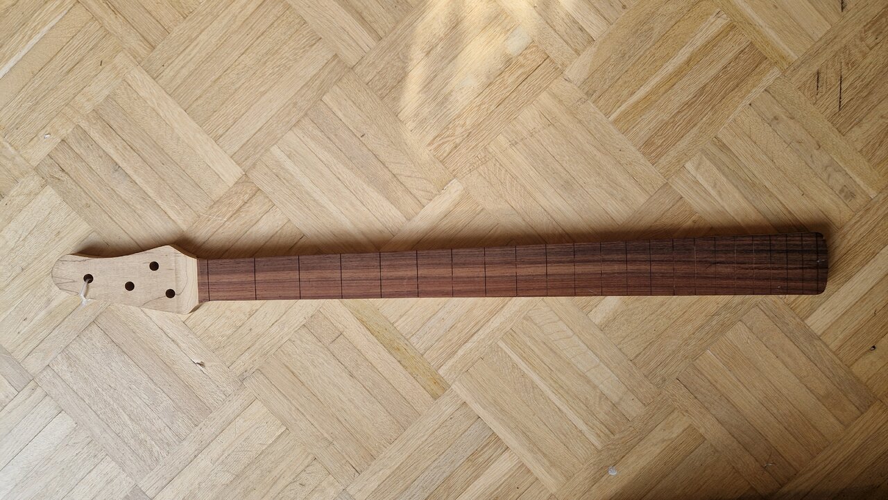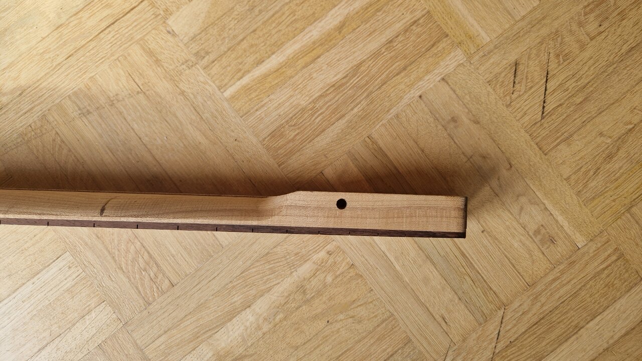 Ein unfertiger Halsrohling, in etwa im MuMa Stil, Besonderheit ist (unter anderem) die Halseinstellschraube an der Seite
