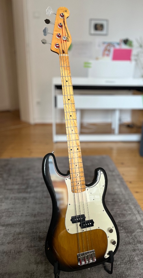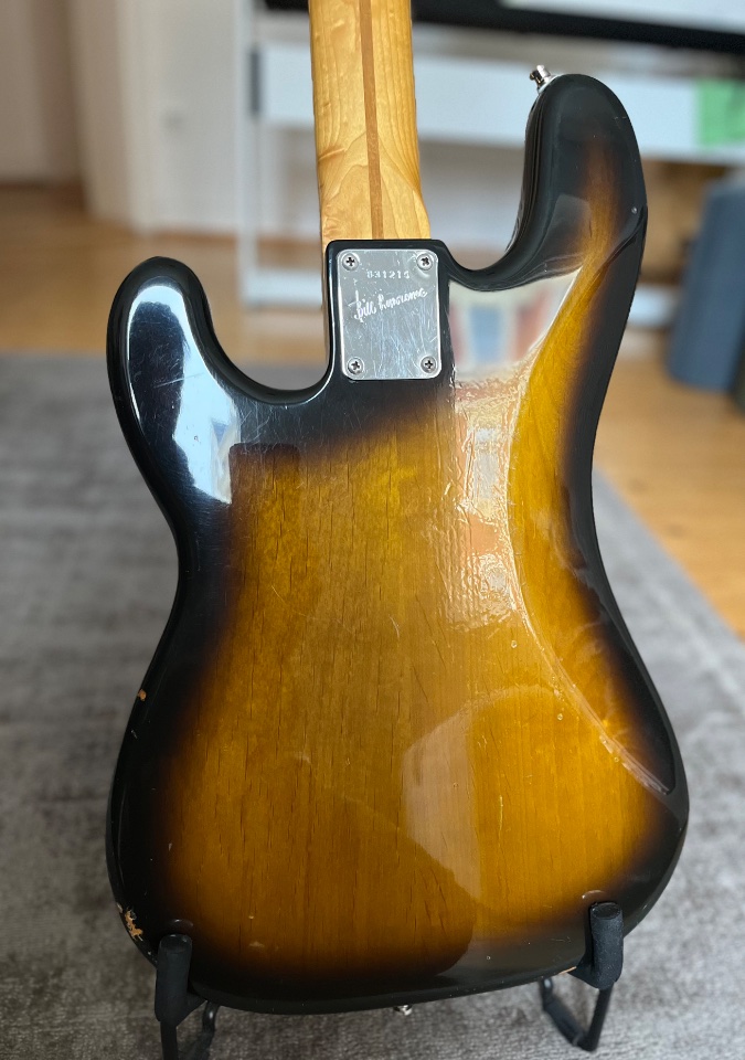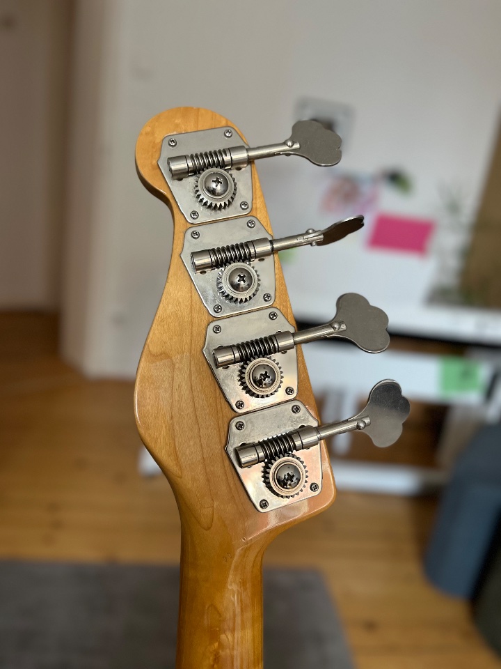 Tolles Tobacco Sunburst, aufregend gemaserter Ahornhals, schmale Vintagebünde und Vintage Reverse Tuner, made in Japan.