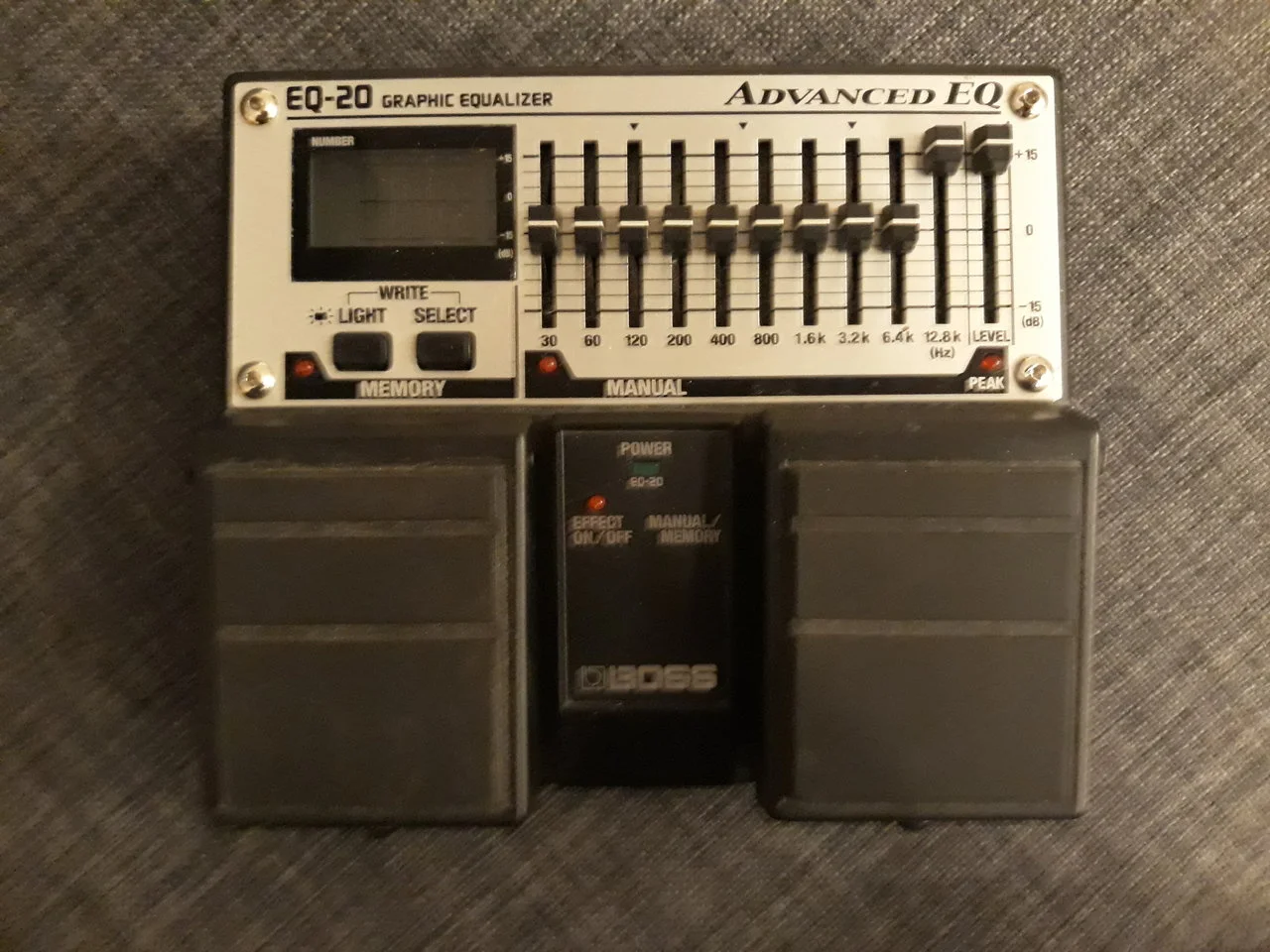 Mit original Verpackung und Gebrauchsanweisung, nur leichte Gebrauchsspuren an der Unterseite. Ist mittlerweilen ein Klassiker da es seit Jahren nicht mehr produziert wird...bis zu 9 Einstellungen sind speicherbar und abrufbar, die 10 Einstellung, wäre dann die, die man gerade am EQ eingestellt hat. Per Fuss-schalter ist diese oder eine gespeicherte abrufbar. Also per Fuss immer zwei verschiedene Einstellungen abrufbar.