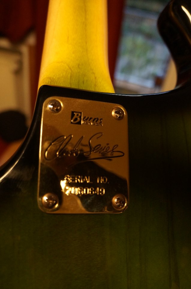 Zum Verkauf steht dieser schicke Burns Marquee in seltenem Greenburst mit goldener Hardware. Laut Seriennummer ist er wohl zwischen 2004 und 2007 gebaut worden.