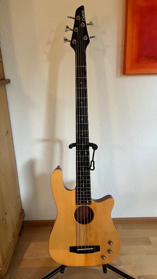 Hier ein seltener Carvin Bass. Gerader Hals, flache, schnelle Saitenlage, Flatwounds, druckvoller-brillanter Sound, Halsstab gängig, Verstell-Schlüssel inklusive.